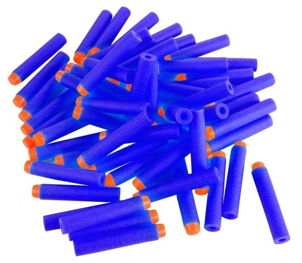 Náhradní pěnové náboje do dětských zbraní Blaze Storm a Nerf. V sadě je celkem 59 kusů nábojů v modré barvě s oranžovou špičkou.