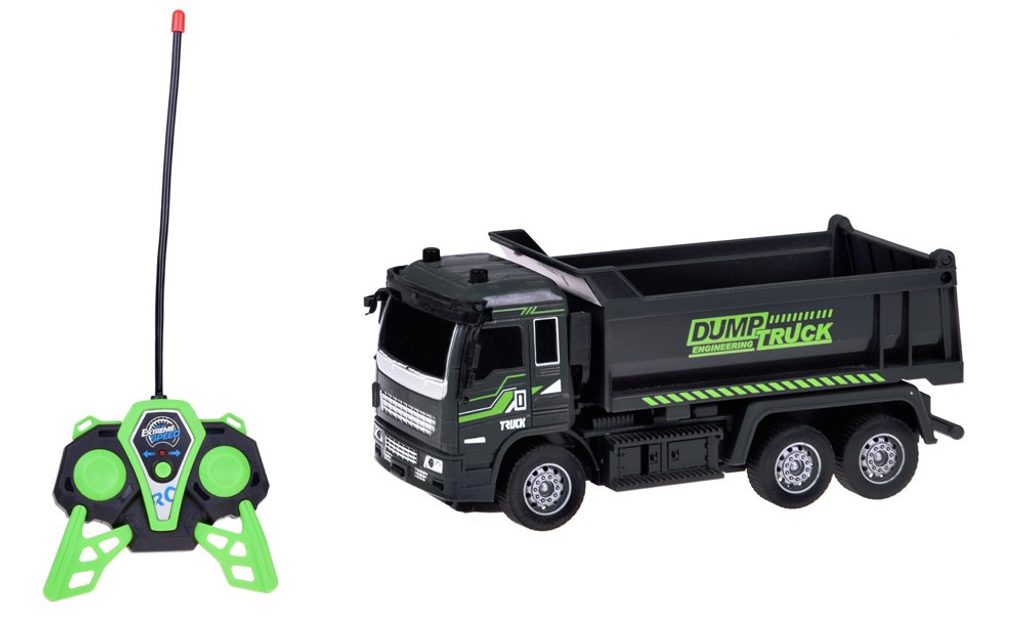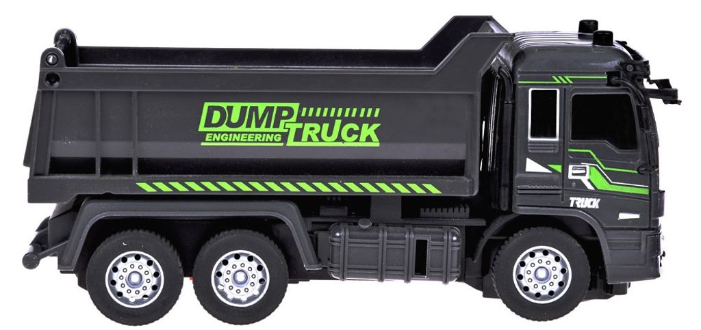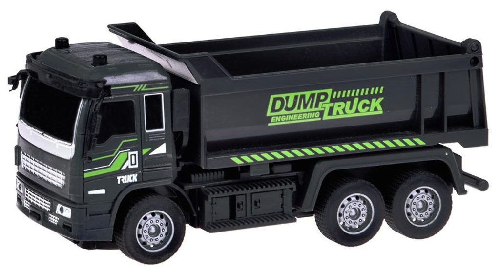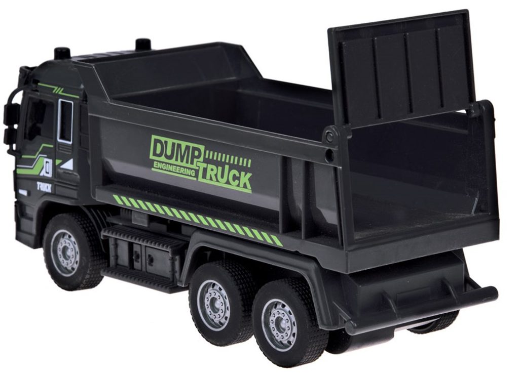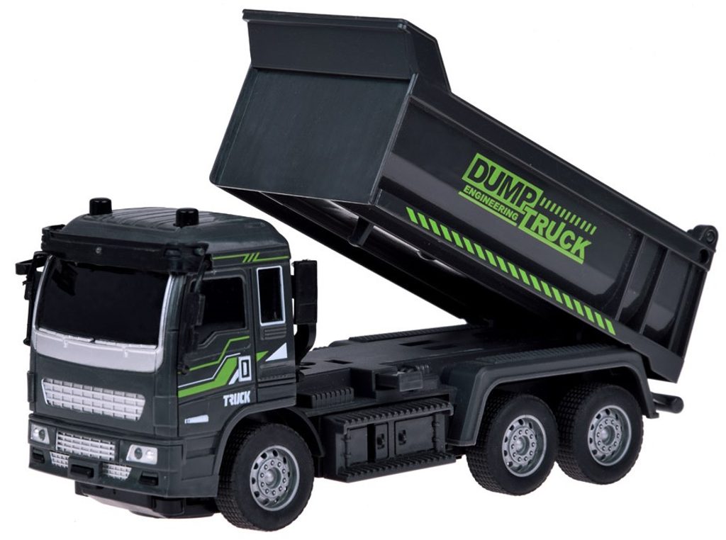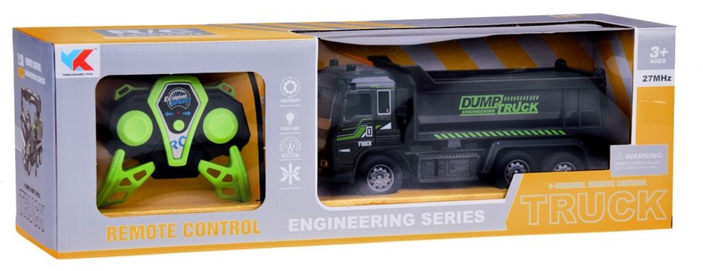 Auto s dálkovým ovládáním 27MGz v provedení nákladního auta Dump Truck umožnuje jízdu dopředu a dozadu, zatáčí doprava a doleva. Je vybaveno světelnými efekty. Součástí balení je dálkový ovladač se 2 páčkami pro změnu směru jízdy a jízdu vpřed a vzad. Ovladač i autíčko jsou napájeny bateriemi, které nejsou součástí balení. Autíčko je vyrobeno z plastu a má certifikaci CE.