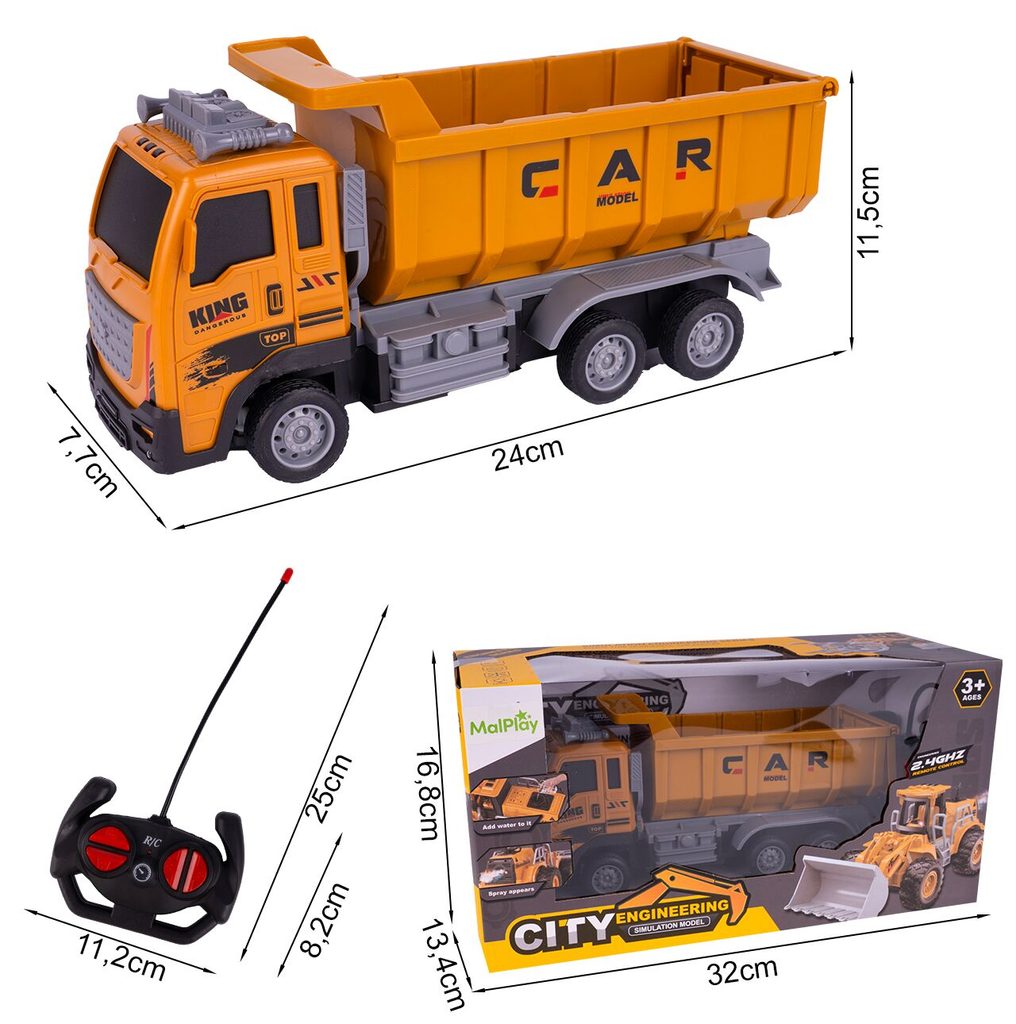 Auto s dálkovým ovládáním 2,4 GHz v provedení nákladního auta King Car umožnuje jízdu dopředu a dozadu, zatáčí doprava a doleva. Je vybaveno světelnými efekty. Součástí balení je dálkový ovladač se 2 tlačítky pro změnu směru jízdy a jízdu vpřed a vzad. Ovladač i autíčko jsou napájeny bateriemi, které nejsou součástí balení. Autíčko je vyrobeno z plastu a má certifikaci CE.