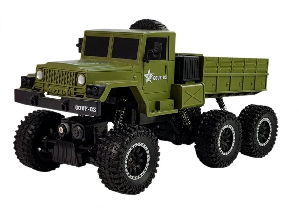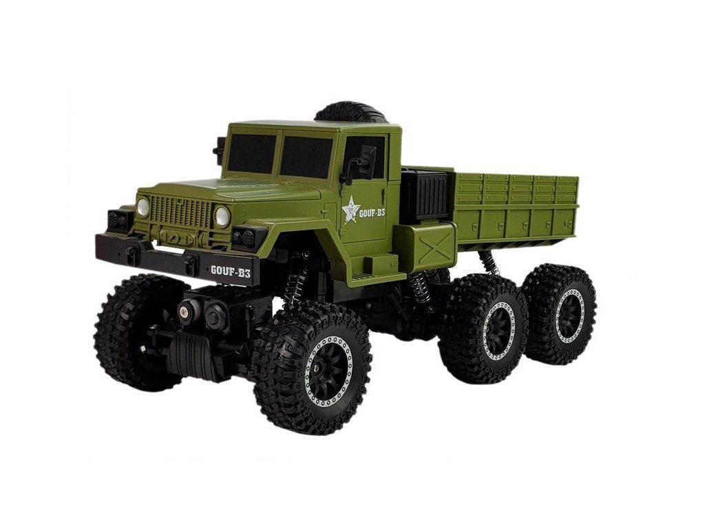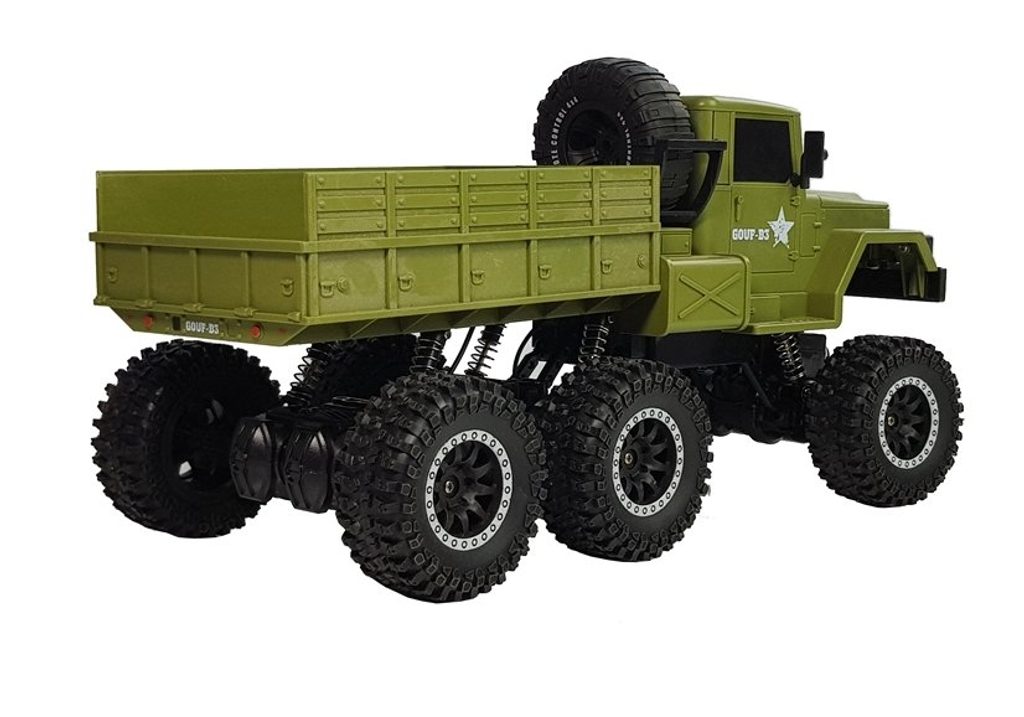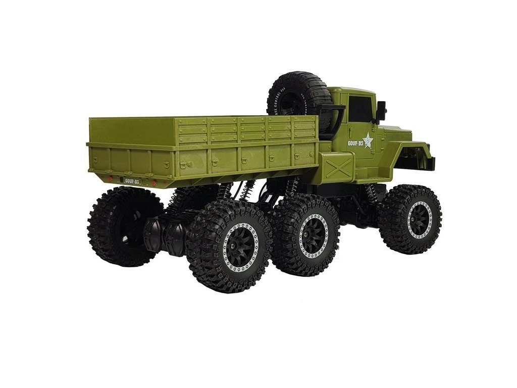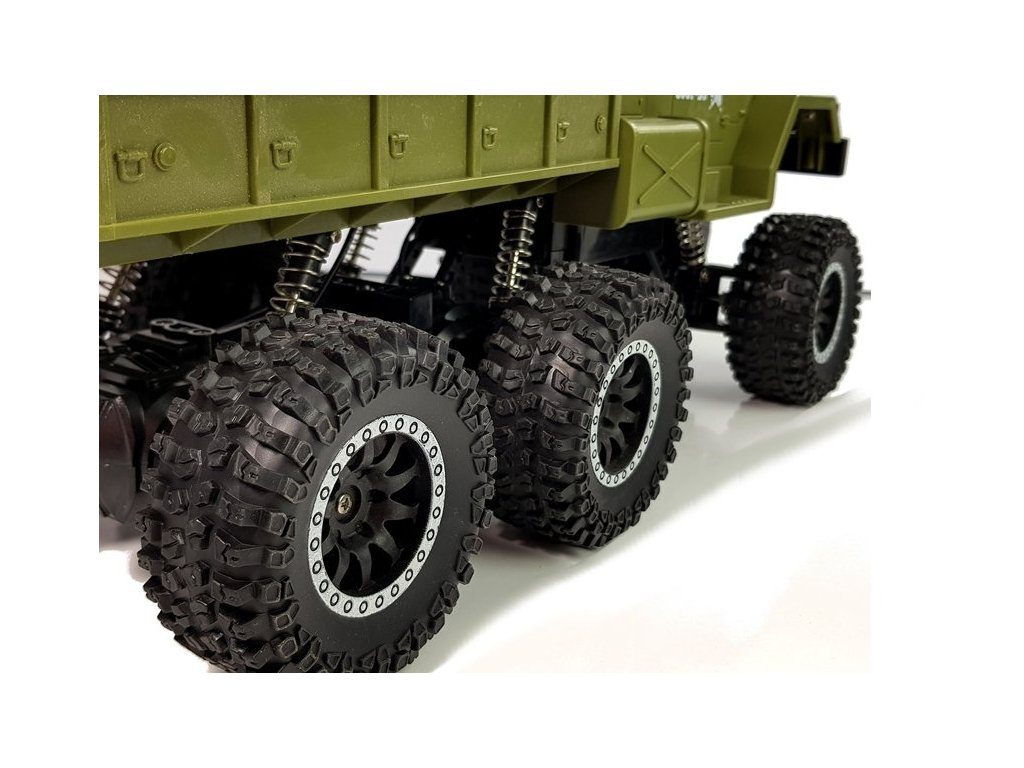 Vojenské nákladní auto Army Truck na dálkové ovládání s dálkovým ovladáním 2,4G umožnuje jízdu dopředu a dozadu, zatáčí doprava a doleva. Je osazeno gumovými koly s velmi dobrou přilnavostí a je vybaveno silnými tlumiči nárazů. Součástí balení je akumulátor, USB nabíječka a dálkový ovladač. Dálkové ovládání je napájeno bateriemi, které nejsou součástí balení. Autíčko je vyrobeno z odolného plastu a má certifikaci CE.