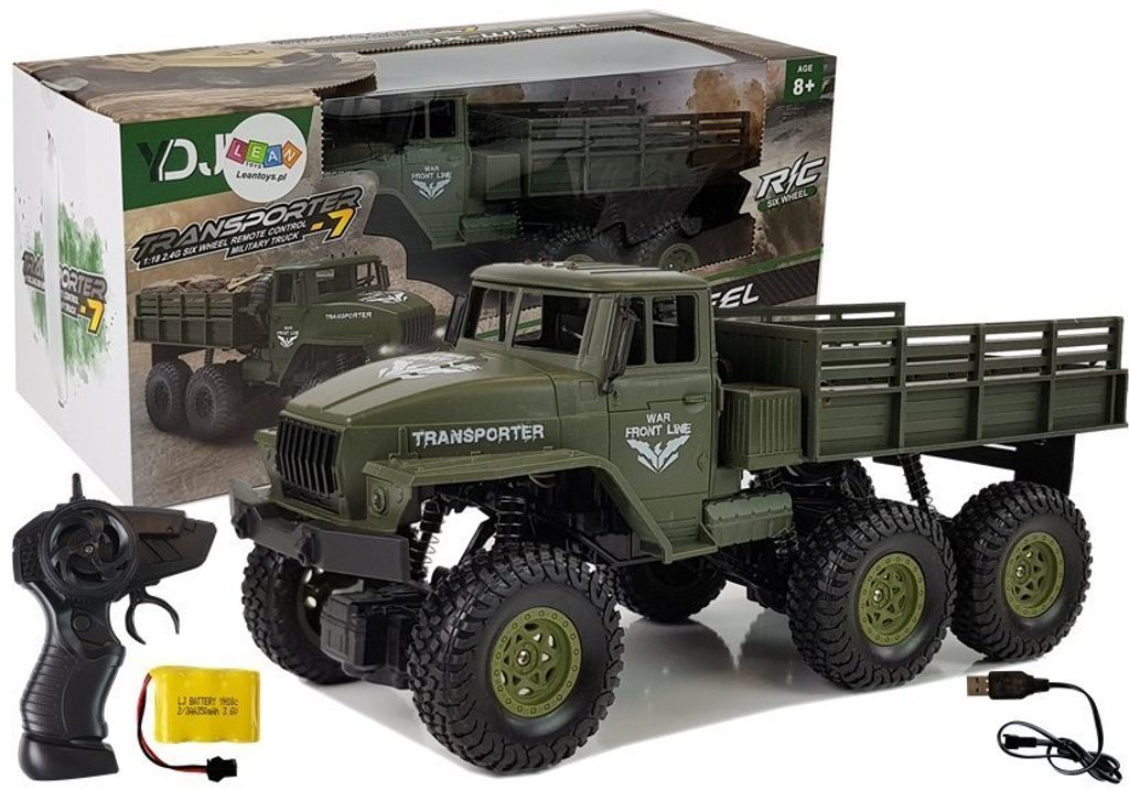 Vojenské nákladní auto Army Truck na dálkové ovládání v měřítku 1:18 s dálkovým ovládáním 2,4G umožnuje jízdu dopředu a dozadu, zatáčí doprava a doleva. Je osazeno gumovými koly s velmi dobrou přilnavostí a je vybaveno silnými tlumiči nárazů. Součástí balení je akumulátor, USB nabíječka a dálkový ovladač. Dálkové ovládání je napájeno bateriemi, které nejsou součástí balení. Autíčko je vyrobeno z odolného plastu a má certifikaci CE.