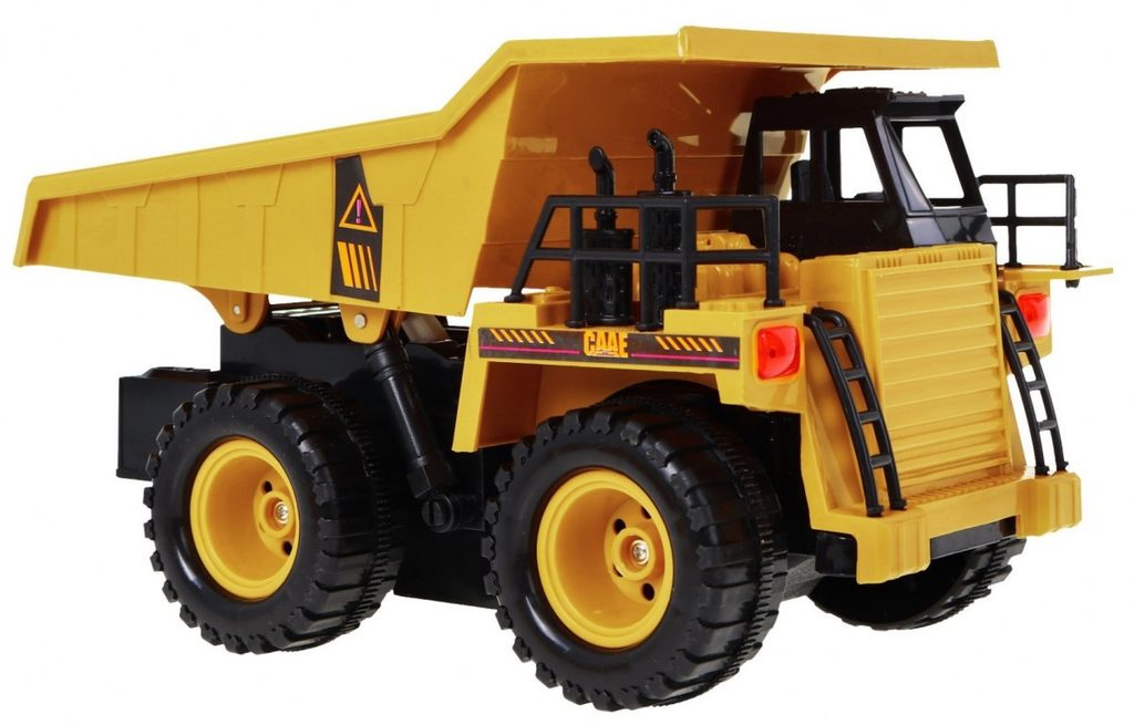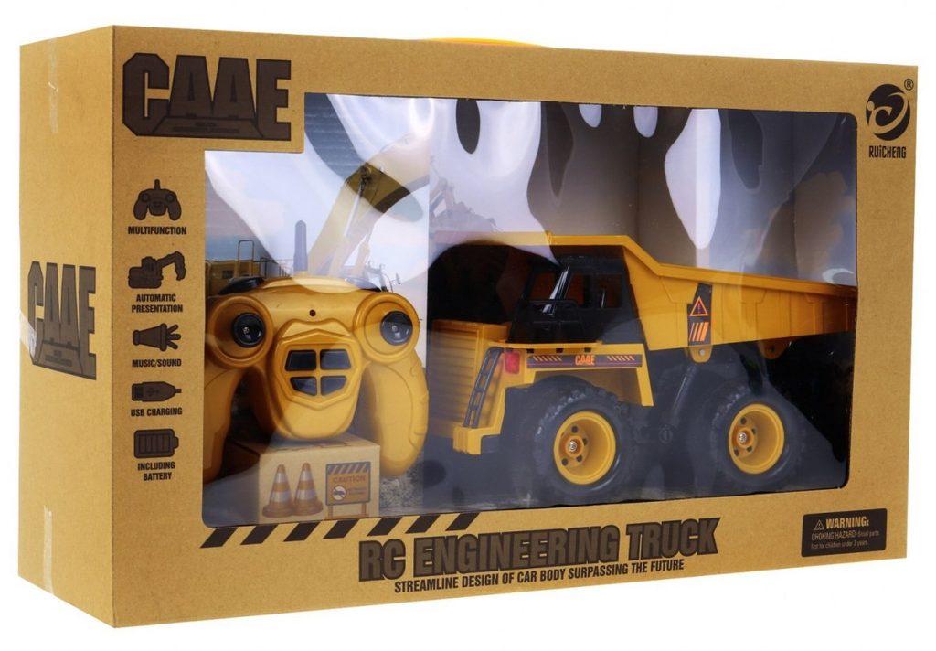 Nákladní auto na dálkové ovládání s dálkovým ovládáním 2,4G umožnuje jízdu dopředu a dozadu, má otáčecí kola doprava a doleva a zvedací korbu na kterou lze nakládat materiál. Ovládání je velmi jednoduché a to pomocí dvou joysticků na ovladači a tlačítek. Během jízdy dopředu se ozývají zvuky nákladního auta, během couvání se ozývá pípání. Autíčko je napájeno 4,8V akumulátorem, který je součástí balení spolu s USB nabíječkou. Dálkové ovládání je napájeno bateriemi, které nejsou součástí balení. Auto je vyrobeno z plastu a má certifikaci CE.