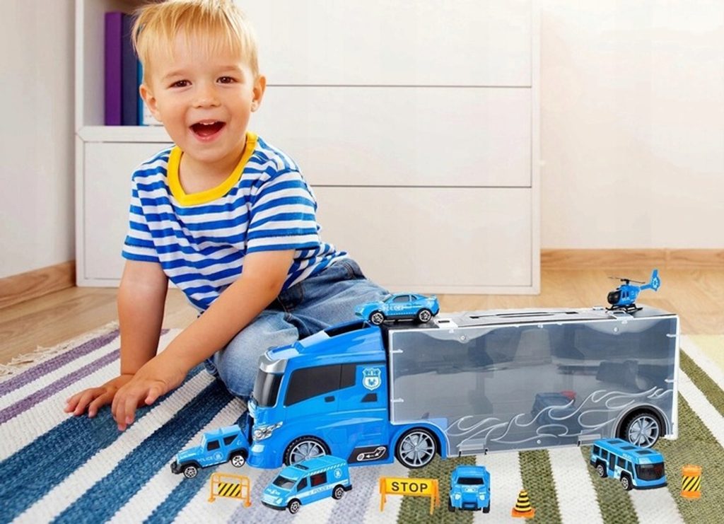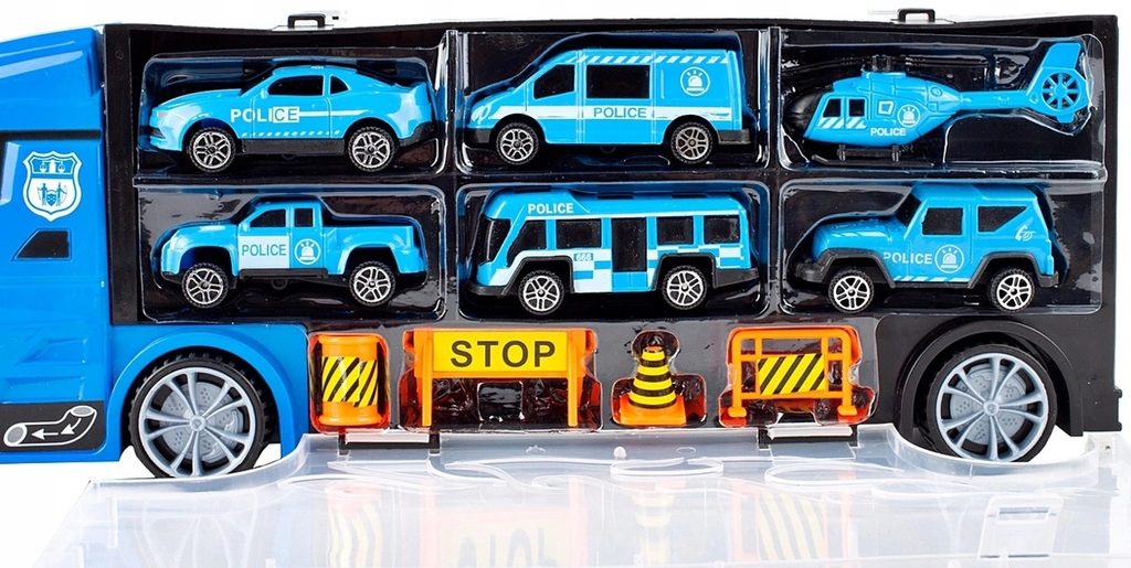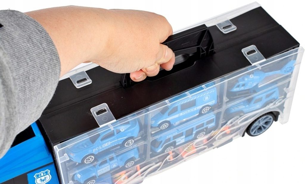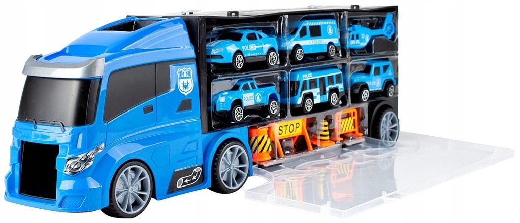 Nákladní autíčko Police Truck II se skluzavkou. Ta je umístěna na střeše auta a končí v přední části. Součástí auta je 5 policejních autíček, vrtulník a 4 kusy dalšího silničního příslušenství. Obě boční strany auta jsou otevírací a jsou rozděleny na přihrádky. V horní části je praktický úchyt pro snadné přenášení. Hračka je určena pro děti od 36 měsíců věku.