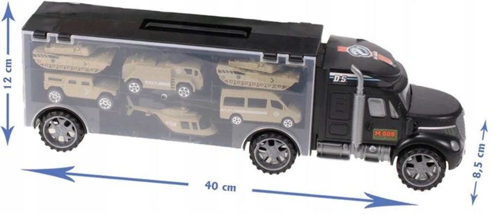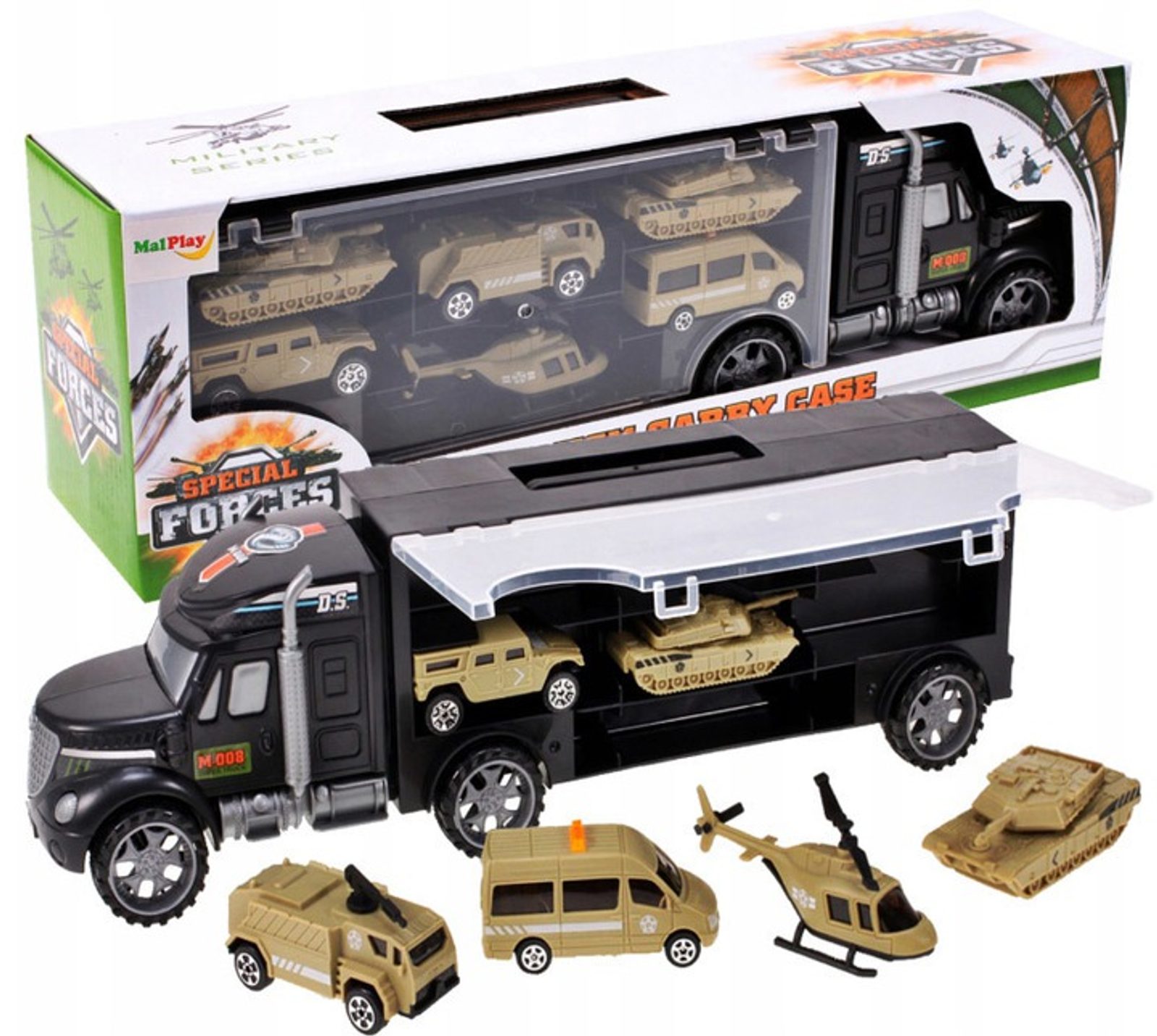 Nákladní autíčko Special Forces je ideální hračkou pro každého motoristického nadšence. Součástí auta jsou 3 různá vojenská autíčka, vrtulník a 2 tanky. Obě boční strany auta jsou otevírací a jsou rozděleny na přihrádky. V horní části je praktický úchyt pro snadné přenášení. Hračka je určena pro děti od 36 měsíců věku.