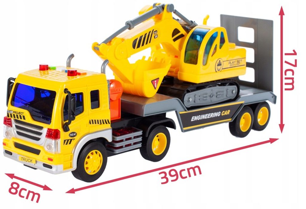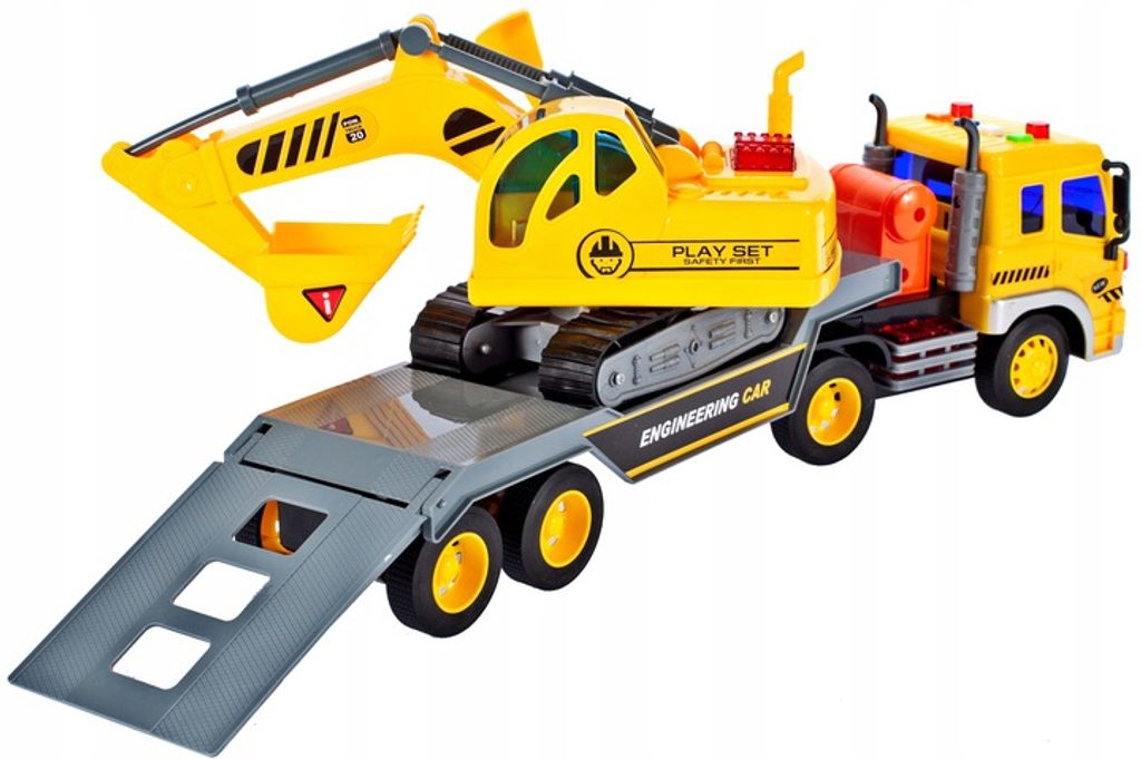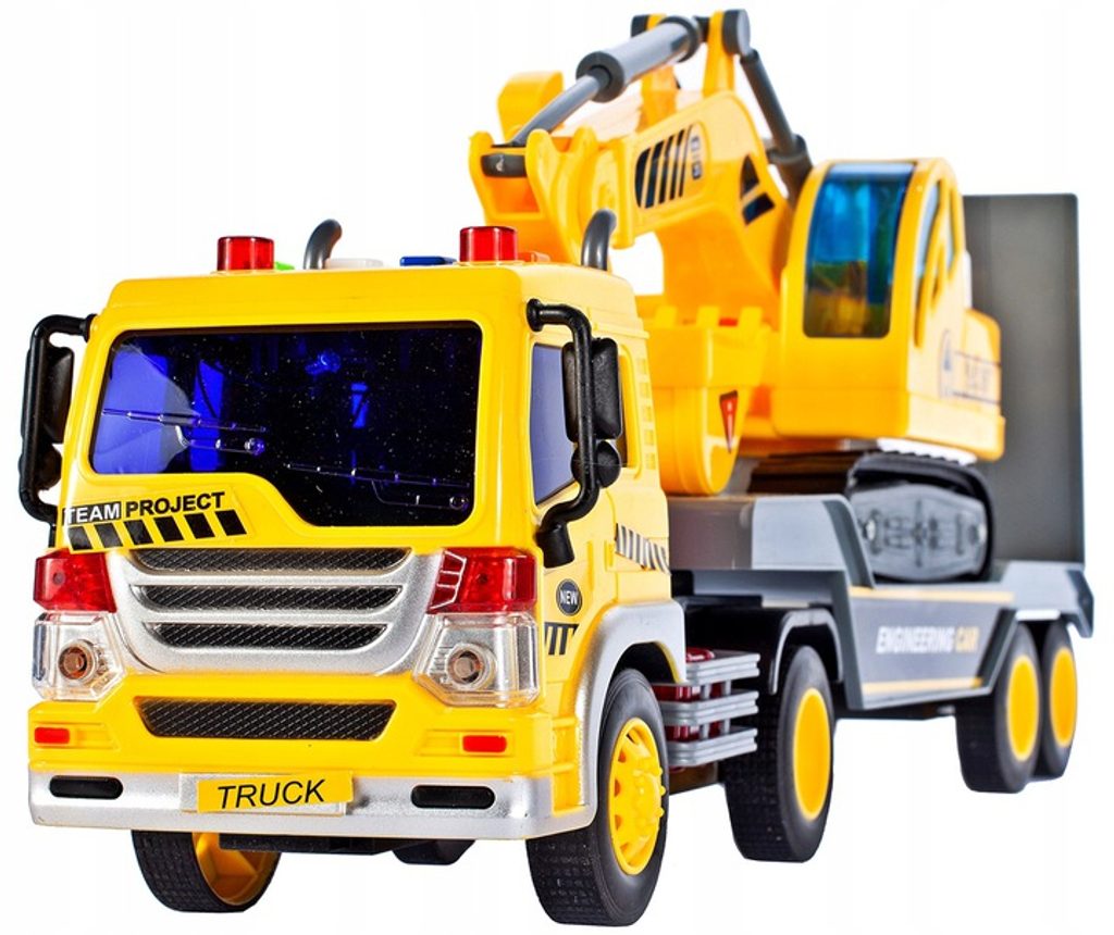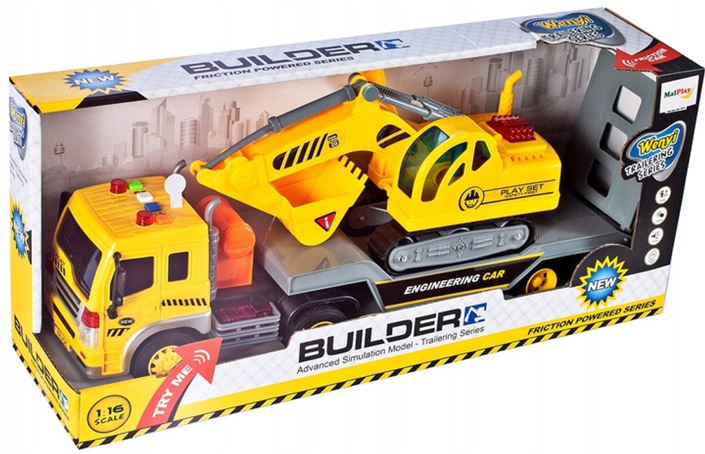 Nákladní auto - tahač s bagrem City Builder je ideální hračkou pro rozvoj manuální zručnosti a logického myšlení. Bagr je vybavený pohyblivou lžící a kabinou. Pohon zajišťuje setrvačník na předních kolech. Na střeše kabiny jsou umístěny tlačítka se světlem a zvuky klaksonu, startování, motoru a couvání. Hračka je určena pro děti od 36 měsíců věku.