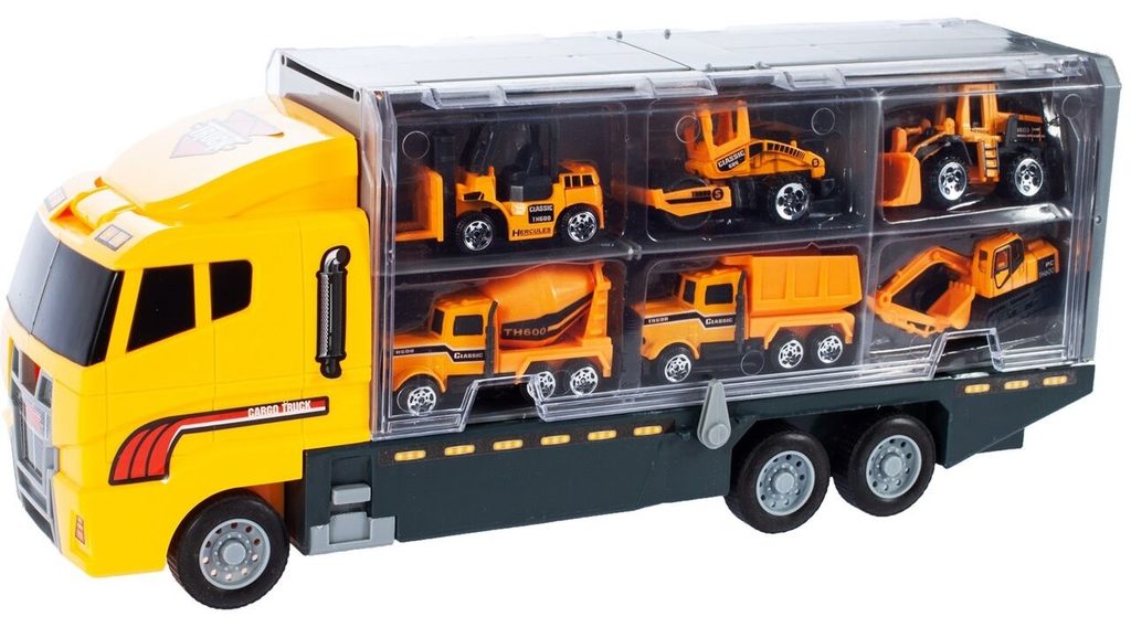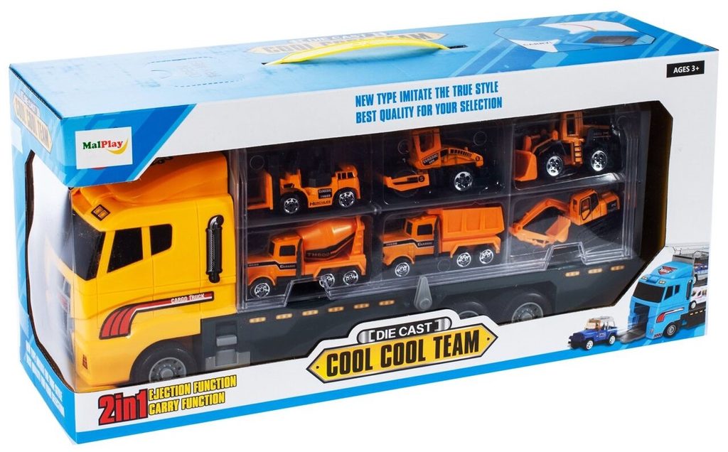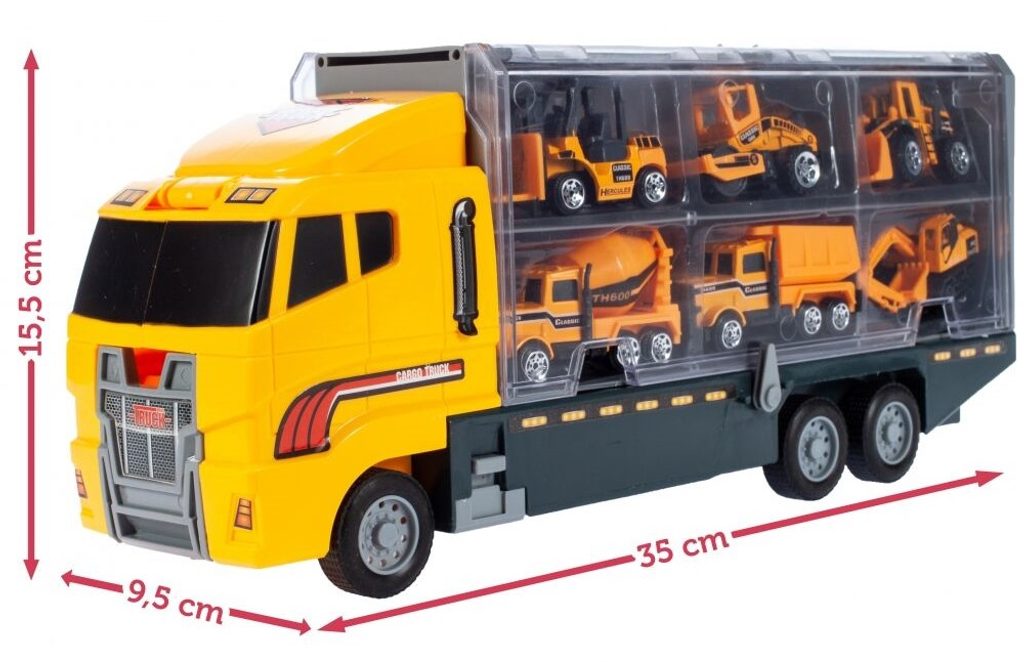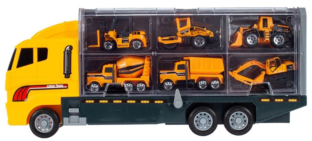 Nákladní autíčko Building Truck je ideální hračkou pro každého motoristického nadšence. Součástí auta je celkem 6 různých stavebních strojů a autíček. Dítě zde najde nakladač, míchačku, nákladní auto, bagr, vysokozdvižný vozík a válec. Obě boční strany auta jsou otevírací a jsou rozděleny na přihrádky. Otevírací je také motor a střecha. Hračka je určena pro děti od 36 měsíců věku.