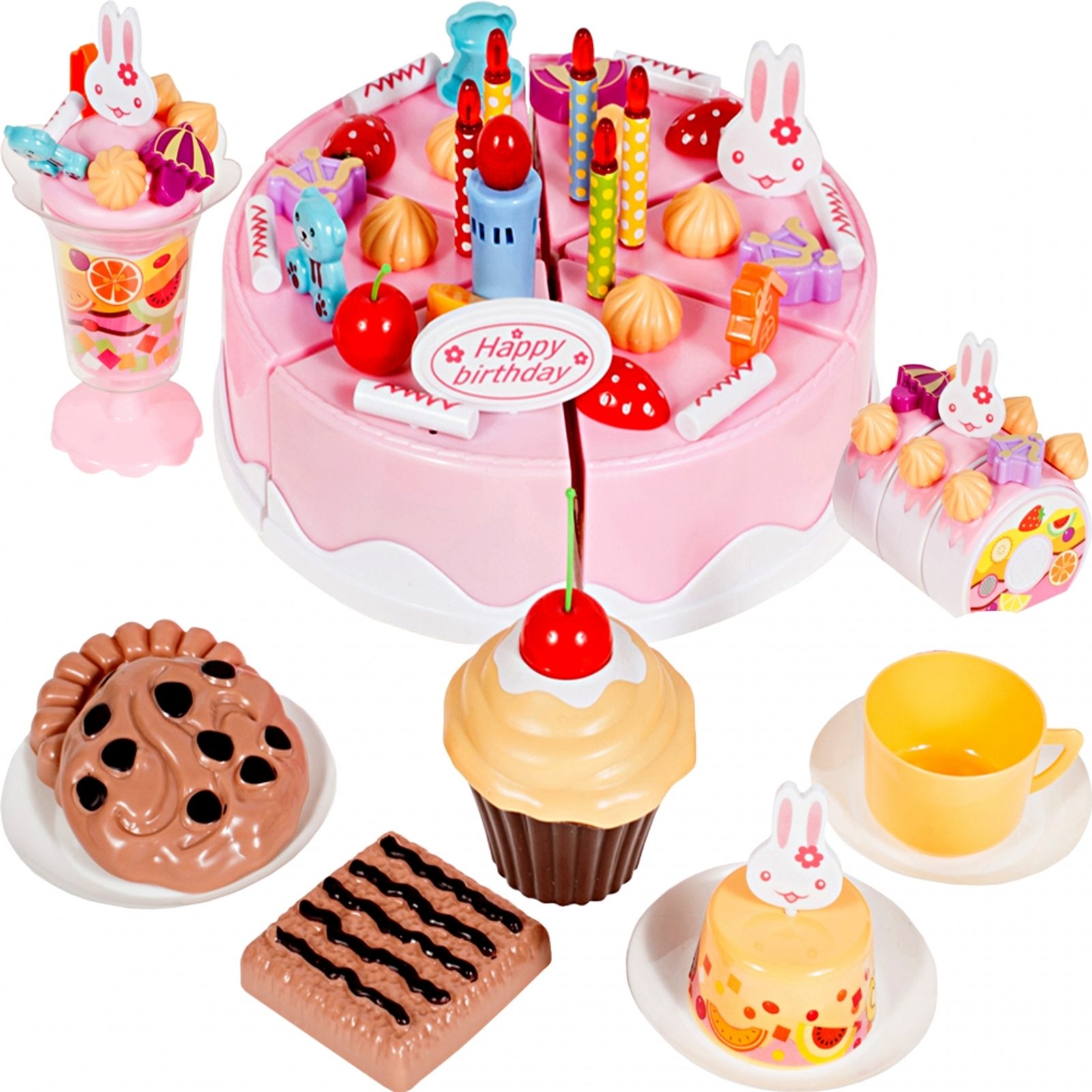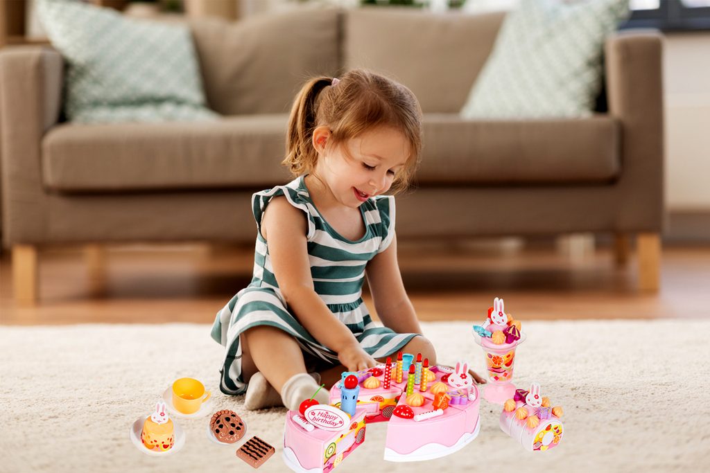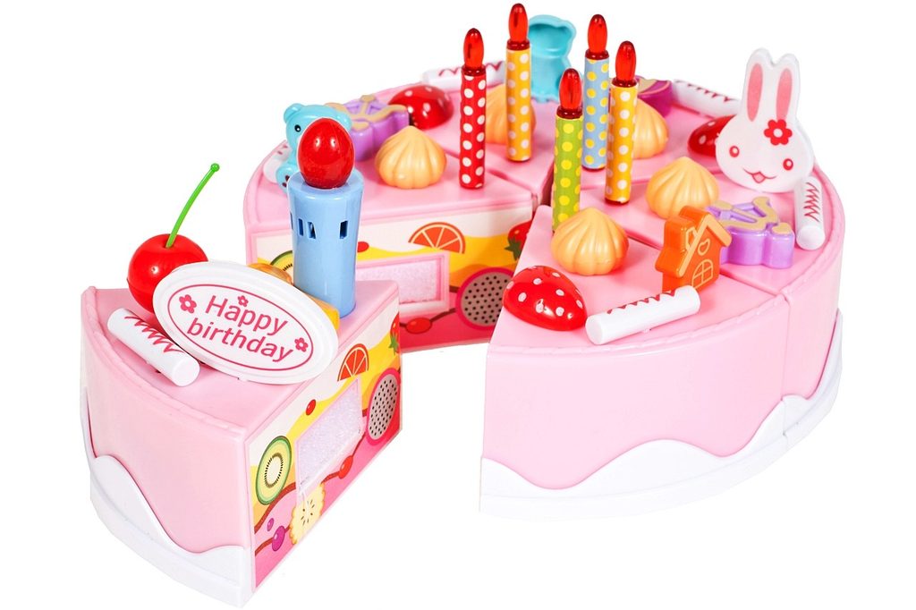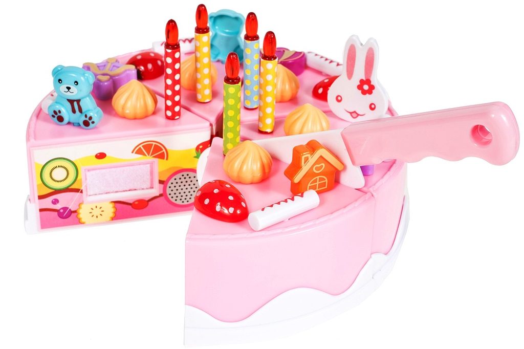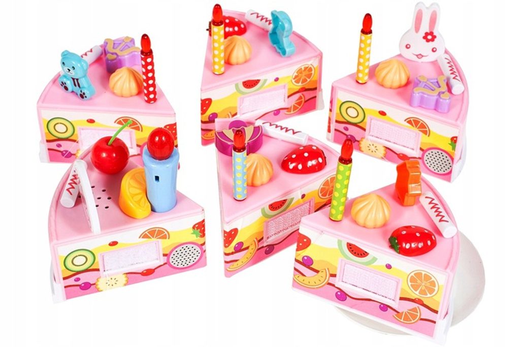 S touto velkou narozeninovou sadou DIY Cake s krájecím dortem si každé dítě může udělat tu nejlepší oslavu nebo se stát skutečným cukrářem. Základem sady je dort rozdělený na 6 částí, které se dají spojit pomocí suchého zipu. Doprostřed dortu se vkládá svíčka, která po zmáčknutí tlačítka svítí a přehrává melodii "Happy Birthday". Dále v sadě naleznete, příbory, talířky, dezerty, sušenky, krájecí nůž, samolepky a mnoho dalších. Tato hračka je určena pro děti od 3 let věku.