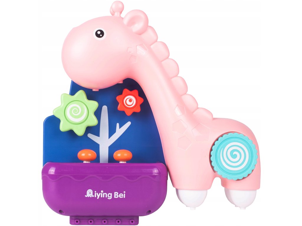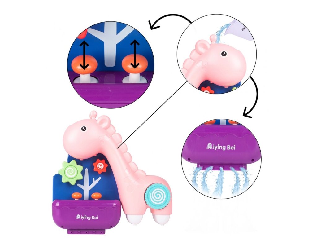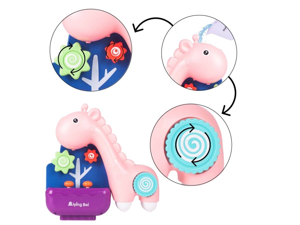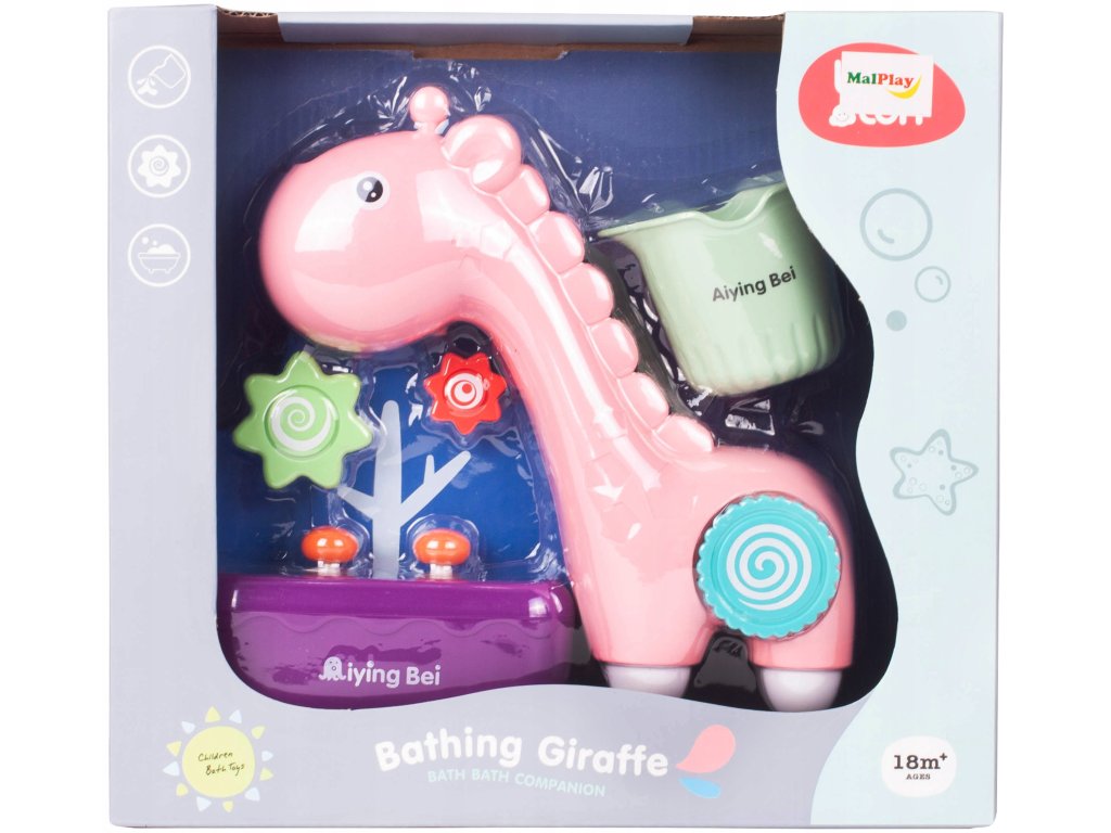 Dětská hračka Bathing Giraffe je perfektní hračkou do vany. Je vybavena přísavkami pro snadné uchycení do vany nebo na stěnu v koupelně. Po nalití vody začne voda protékat různými otvory v hračce, roztočí ozubená kolečka a také zvedá hříbky umístěné uvnitř. Součástí je nádobka na nalévání vody. Hračka je vyrobená z plastu a určena pro děti od 18 měsíců věku.