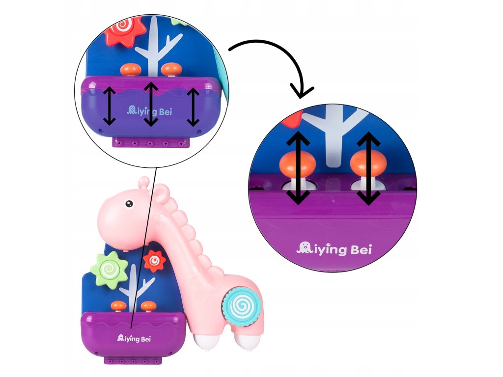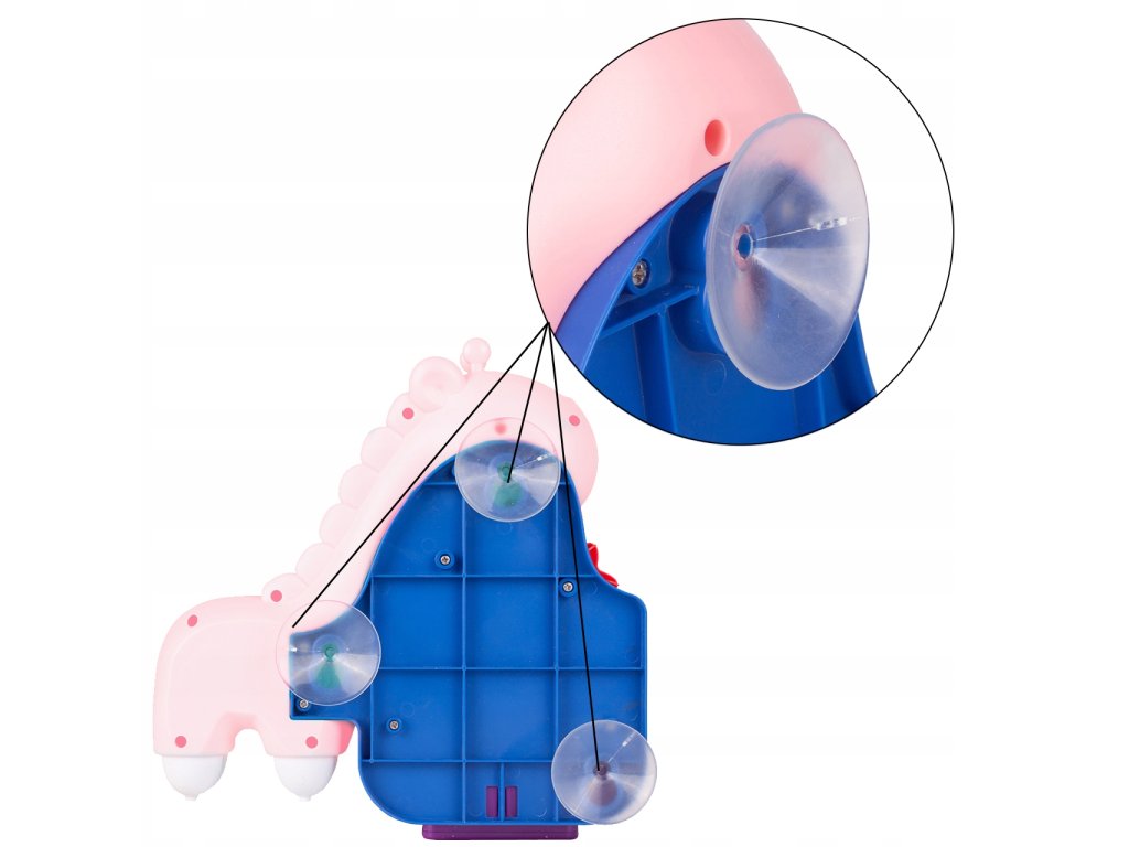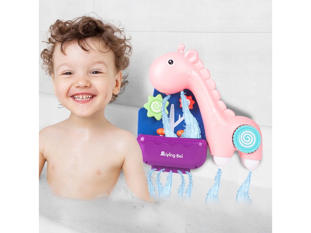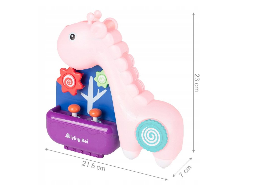 Dětská hračka Bathing Giraffe je perfektní hračkou do vany. Je vybavena přísavkami pro snadné uchycení do vany nebo na stěnu v koupelně. Po nalití vody začne voda protékat různými otvory v hračce, roztočí ozubená kolečka a také zvedá hříbky umístěné uvnitř. Součástí je nádobka na nalévání vody. Hračka je vyrobená z plastu a určena pro děti od 18 měsíců věku.