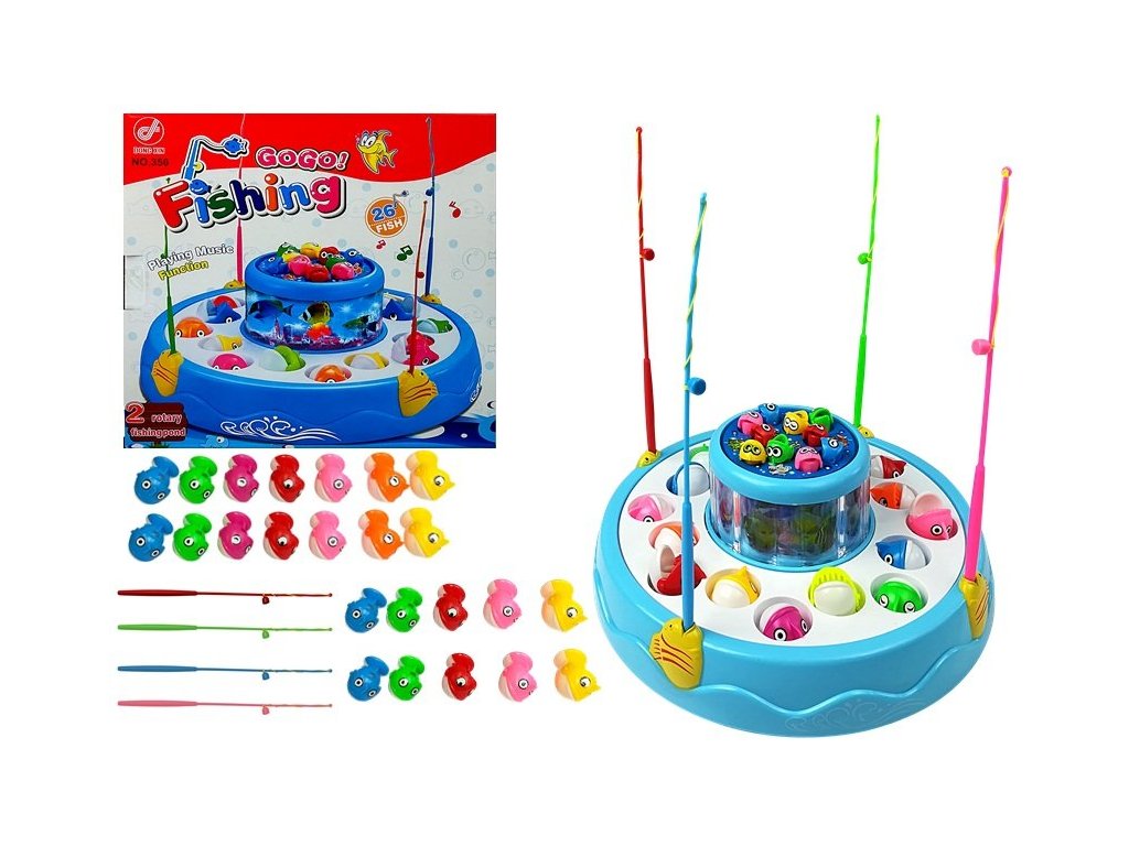 Dětská hra lovení rybiček GoGo Fishing je ideální hračkou pro děti i pro dospělé. Sada obsahuje celkem 32 součástí. Základem jsou 2 "rybníčky" které se mohou otáčet buď pomaleji nebo rychleji podle toho jakou chcete mít obtížnost hry. Spolu s otáčením se ozývají také melodie. Další součásti jsou 4 barevné udičky a celkem 24 rybiček ve dvou velikostech. Cílem hry je ulovit co nejvíce rybiček. Hračka je vyrobená z kvalitního plastu v pestrobarevném provedení a určena pro děti od 3 let.