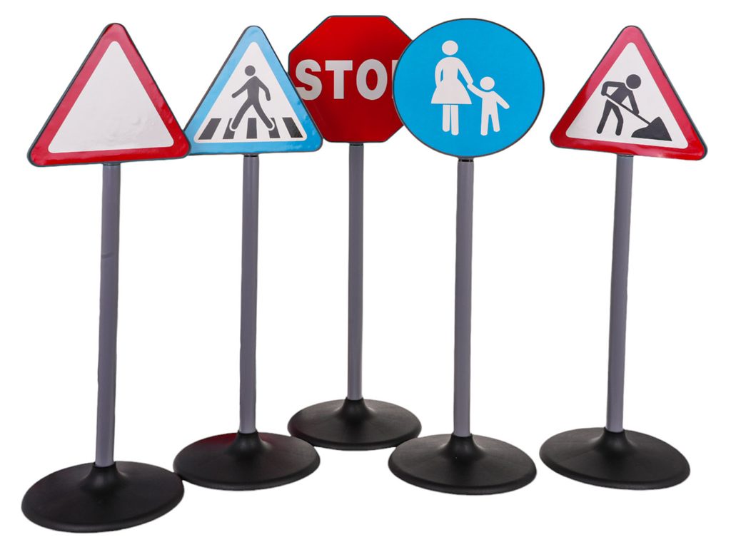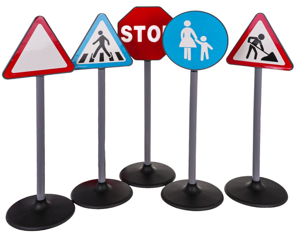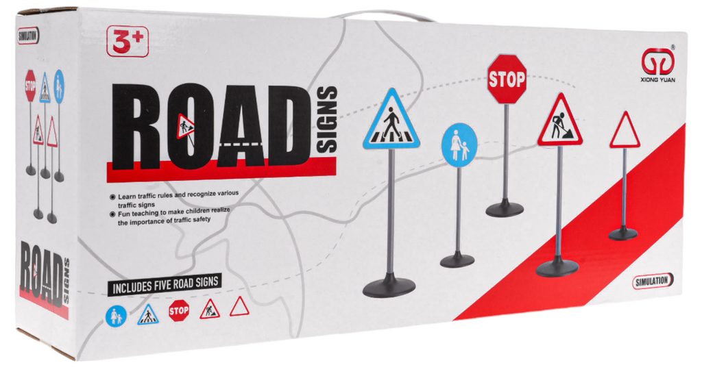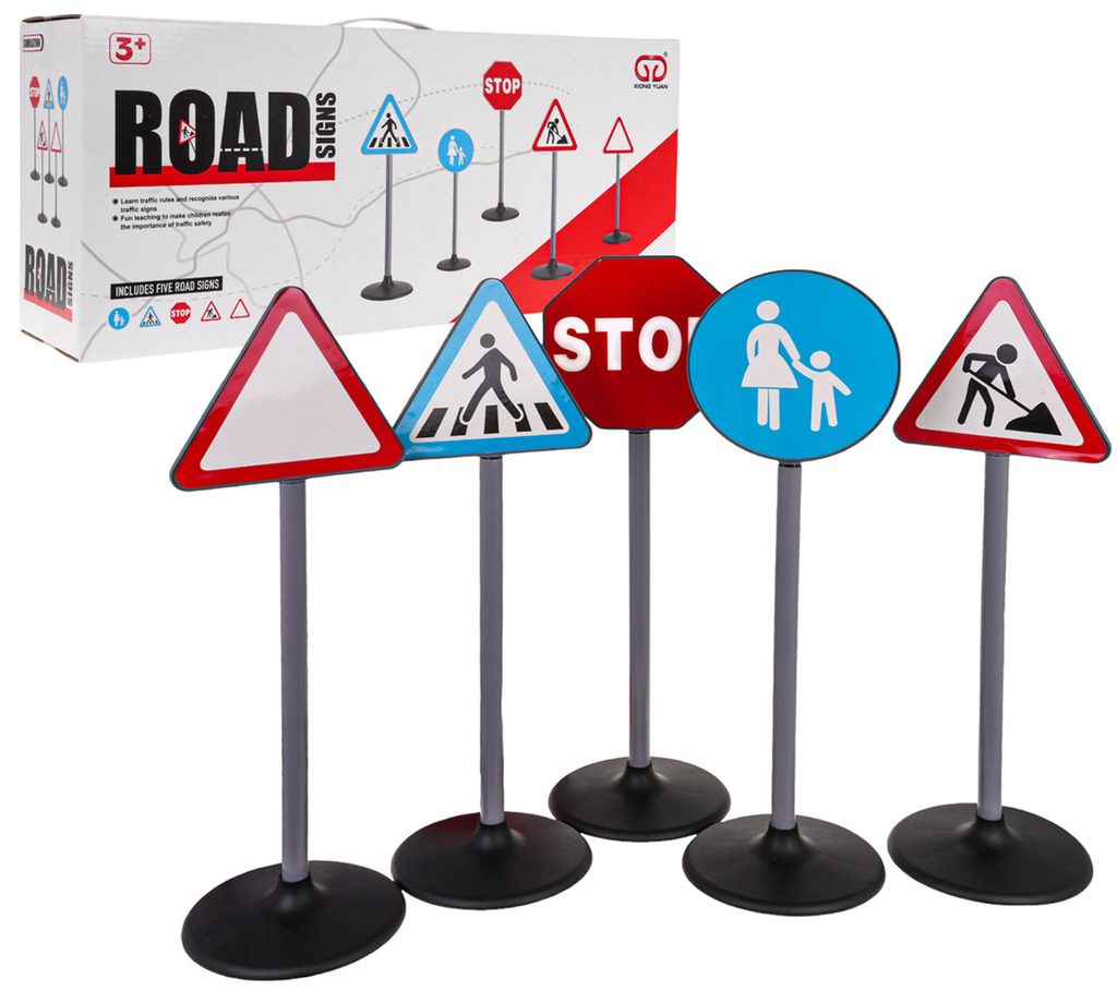 Sada dopravních značek Road Signs uspokojí každého malého řidiče. Lze je využít venku i doma. Snadno se rozkládají a můžete je rozmístit do podoby jakékoliv křižovatky nebo cesty. Dítě se s nimi snadno naučí pravidla provozu a jsou ideální pro jízdu na kole nebo v elektrickém vozítku. Hračka je určena pro děti od 3 let věku.