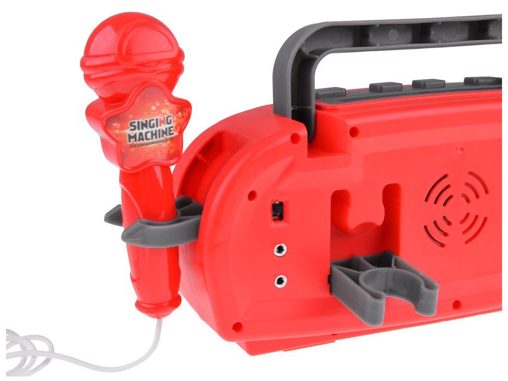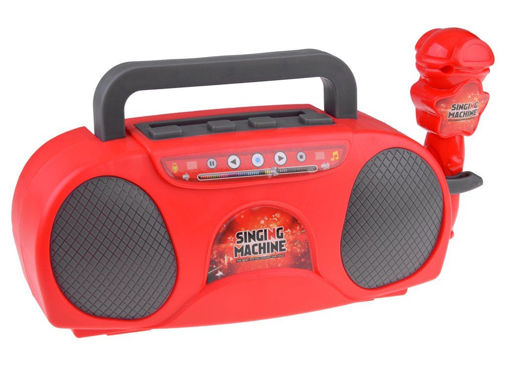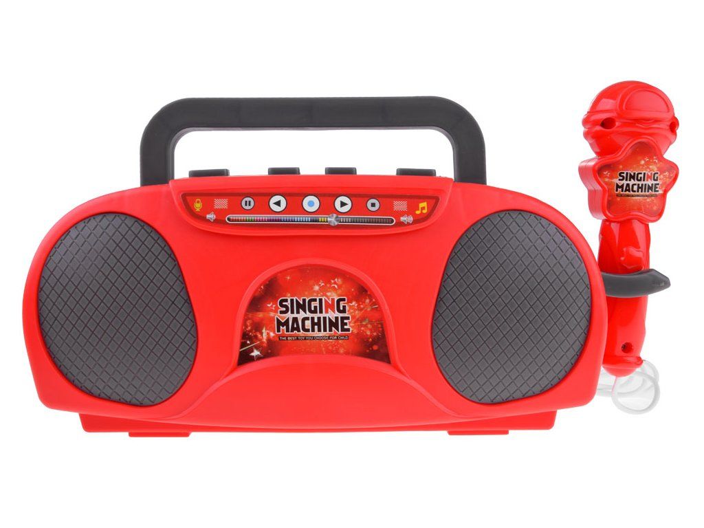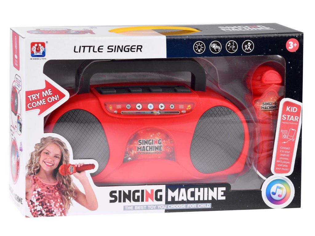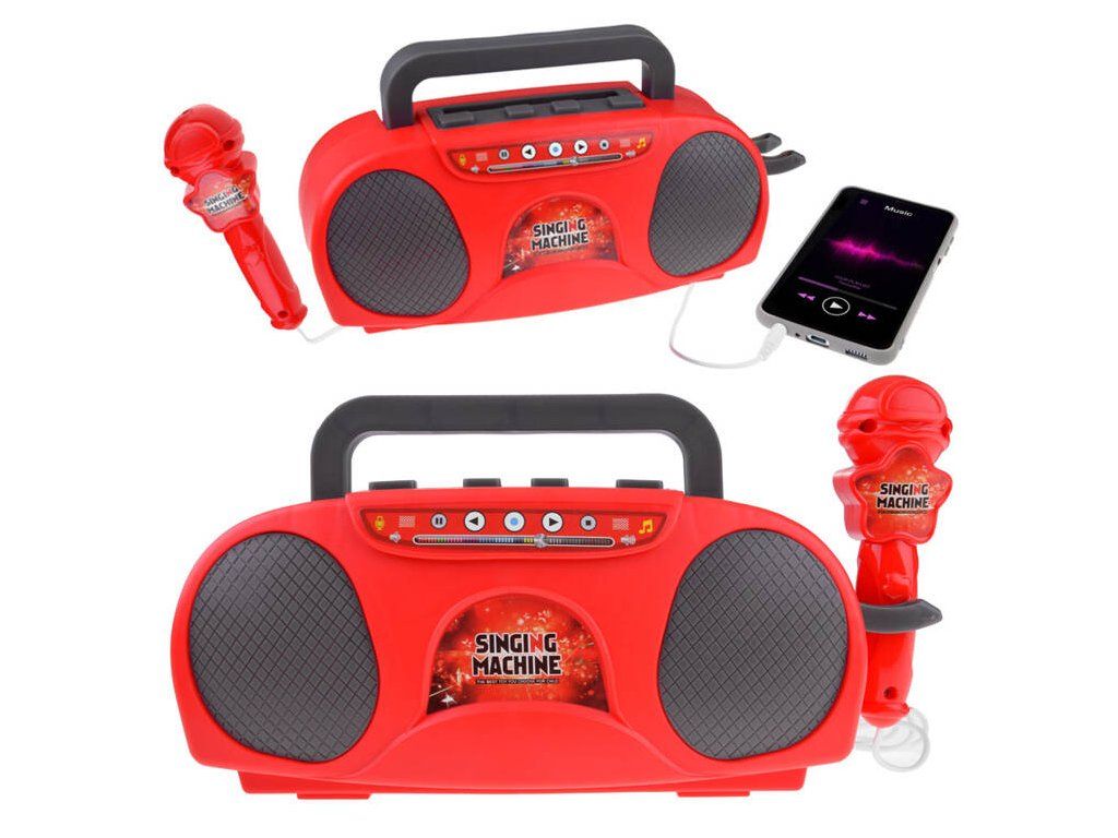 Hrací rádio s reproduktorem a mikrofonem je skvělá vychytávka pro děti. Hračka bliká světly a zesiluje zvuk vašeho hlasu při připojení mikrofonu. Disponuje také druhým vstupem pro připojení audio zařízení, například MP3 přehrávače, pomocí kabelu, který je součástí balení. Rádio přehrává hudbu z připojeného zařízení jako bezdrátový reproduktor. Pro snadné přenášení je vybaveno zasouvací rukojetí a má dva držáky na mikrofon (na zadní a boční straně). Bezdrátové rádio s reproduktorem je ideální pro karaoke a může být hlavním lákadlem dětských oslav. Napájeno je třemi bateriemi 1,5V AA, což umožňuje snadné přenášení k přátelům nebo na zahradu, kde můžete uspořádat fantastickou diskotéku.