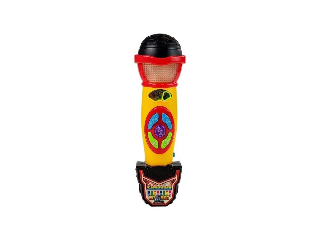 Dětský karaoke mikrofon se světelnými efekty, možností nahrávání a přehrávání přemění Vaše dítě ve skutečnou zpěvačku nebo zpěváka. Je vybavený zabudovanou diodou, která vydává barevné světýlka. Má 20 přednastavených skladeb a má funkci změny hlasu ve 4 různých hudebních stylech. Hračka je vyrobená z kvalitního plastu a určena pro děti od 12 měsíců.
