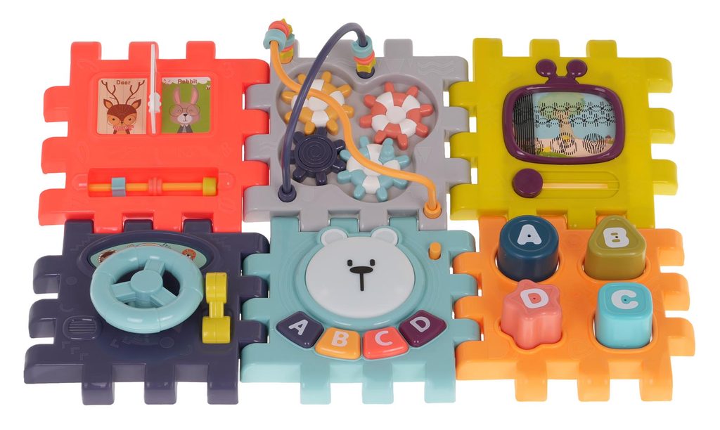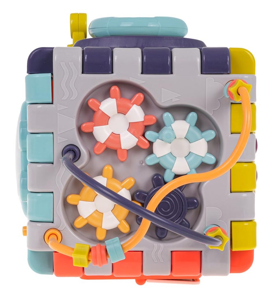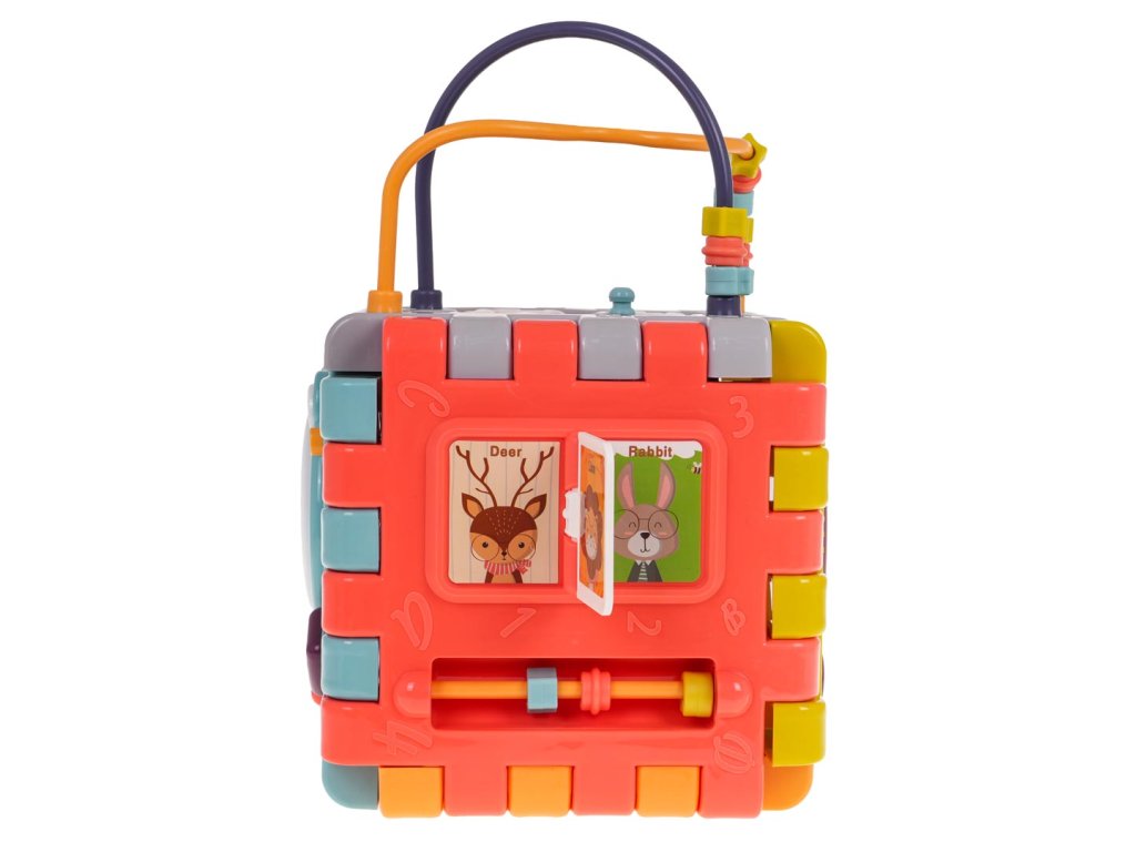 Multifunkční interaktivní kostka se zvukovými a světelnými efekty je určena pro děti od 18 měsíců a nabízí spoustu zábavy a učení. Každá strana kostky poskytuje různé interaktivní aktivity, které zaujmou dítě a podpoří jeho rozvoj. Zvukové a světelné efekty v kombinaci s pestrými barvami stimulují pozornost a vybízejí k objevování. Kostku lze rozložit a hrát si s jednotlivými částmi naplocho. Napájí se třemi AAA bateriemi (nejsou součástí balení).