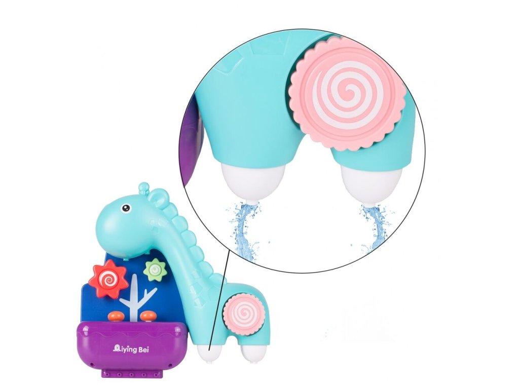 Dětská hračka Bathing Giraffe je perfektní hračkou do vany. Je vybavena přísavkami pro snadné uchycení do vany nebo na stěnu v koupelně. Po nalití vody začne voda protékat různými otvory v hračce, roztočí ozubená kolečka a také zvedá hříbky umístěné uvnitř. Součástí je nádobka na nalévání vody. Hračka je vyrobená z plastu a určena pro děti od 18 měsíců věku.