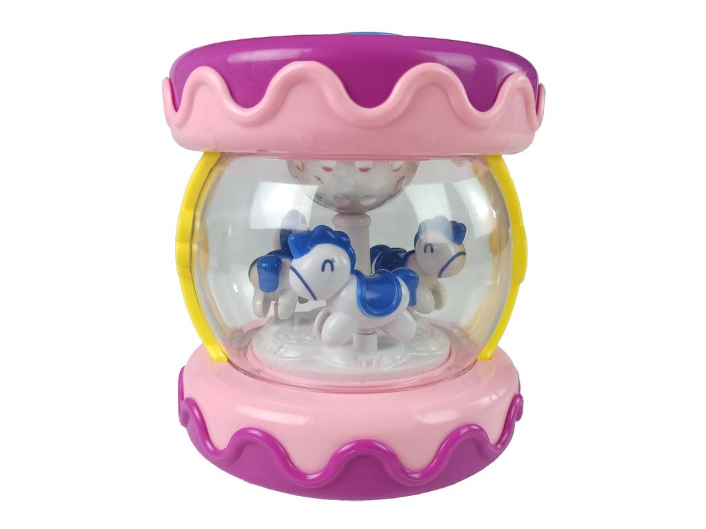 Haunger interaktivní hrající bubínek Music Drum je určen pro ty nejmenší děti. Uprostřed bubínku je umístěno velké tlačítko, po jeho stranách potom několik malých tlačítek se symboly. Ty po zmáčknutí vydávají veselé melodie a zvuky zvířat. Ve spodní části bubínku je umístěn kolotoč s poníky, který snadno upoutá pozornost dítěte. Bubínek má světelné efekty a je vybaven regulací hlasitosti. Bubínek je ideální hračkou pro rozvoj dětské motoriky, hmatu, zraku, logického myšlení a rozpoznávání zvuků. Hračka je určena pro děti od 18 měsíců věku.