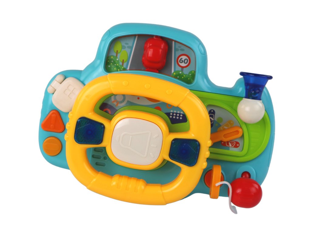 Interaktivní dětský volant se zvuky je určen pro děti od 18 měsíců věku. Volant je vybaven barevnými prvky, které dítě baví a dále rozvíjí motorické a ruční dovednosti. Hračka je zabalena v hezké pastelové krabičce, takže je ideální jako dárek. Během zábavy se dítě naučí poznávat nové barvy a tvary. Tato hudební hračka se skládá z otočného volantu s tvarem skvěle padnoucímu do malé ruky dítěte. Hračka má zvuková tlačítka a obsahuje také klíč, který může být umístěn v tlačítku zapalování k aktivaci zvuku motoru.