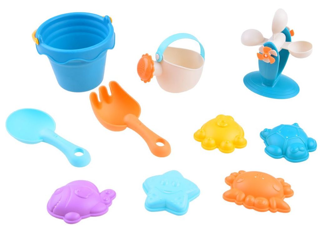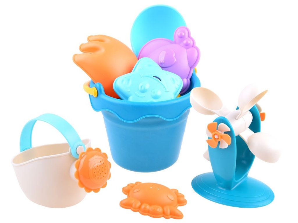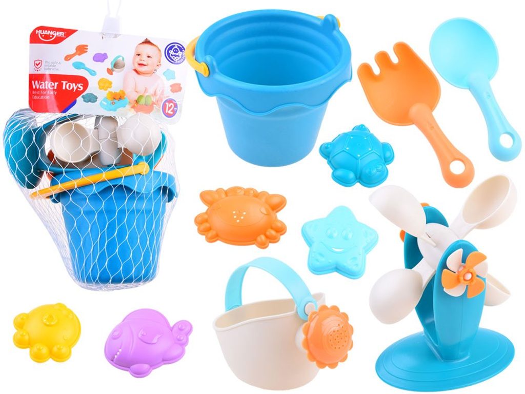 Haunger dětská sada hraček Water Bucket je určena pro děti od 12 měsíců a je vhodná jak pro hru ve vodě tak i na pískovišti. Základem setu je kyblíček s úchytem a vodní mlýnek. Další součásti jsou lopatka a hrabičky a nesmí chybět ani bábovičky. Těch je celkem 5, mají v sobě malé otvory a jsou v provedení kraba, želvy, rybičky, hvězdice a chobotničky. Hračka je vyrobena z plastu a je určena pro děti od 12 měsíců věku.