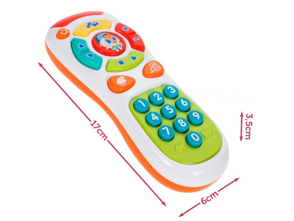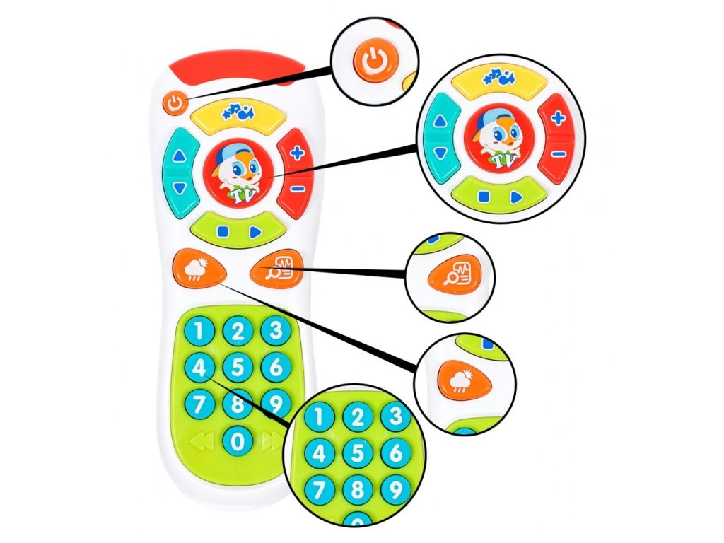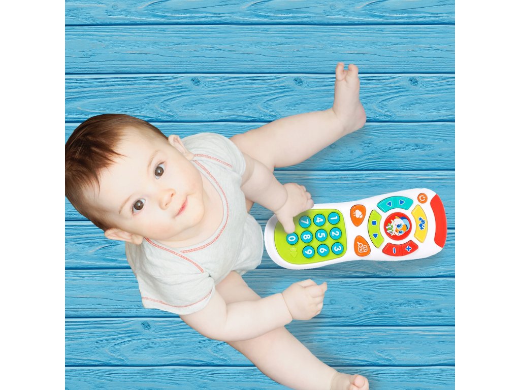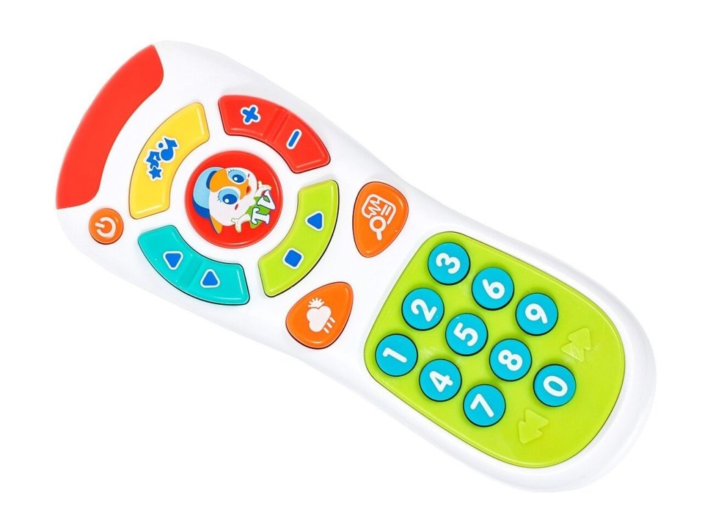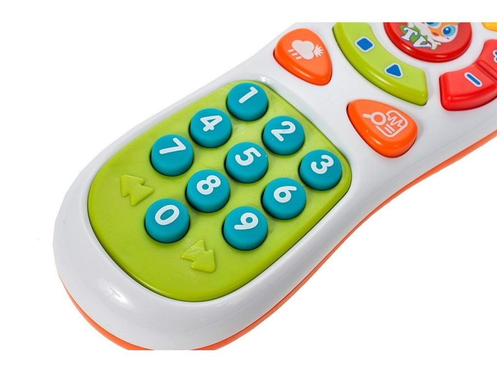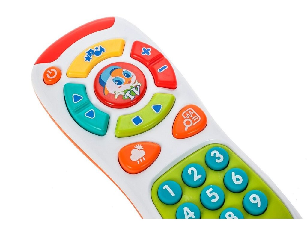 Huile Toys interaktivní televizní ovladač Kids Remote je určen pro děti od 6 měsíců věku. Ovladač má zábavný vzhled a zvukové efekty. Tlačítka spouštějí melodie a různé zvuky. Napodobuje tak skutečný ovladač. Používání této hračky Vaším dítětem pozitivně ovlivní jeho smyslový vývoj, podpoří motoriku, kognitivní schopnosti a koordinaci oko - ruka.