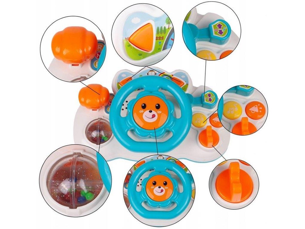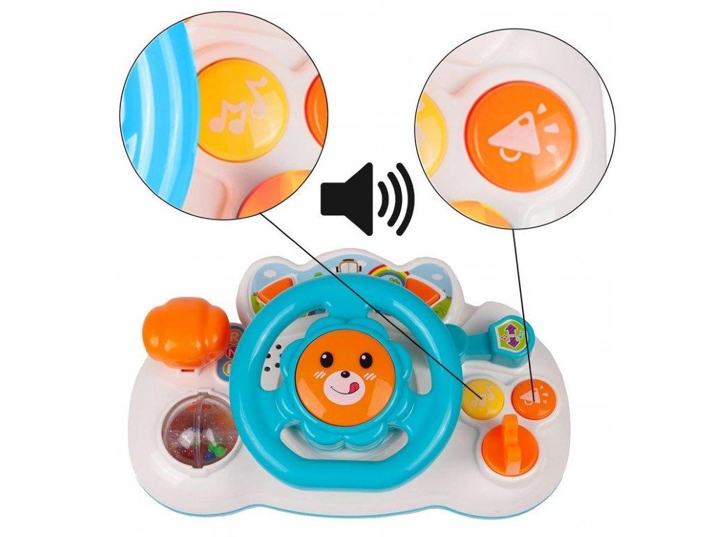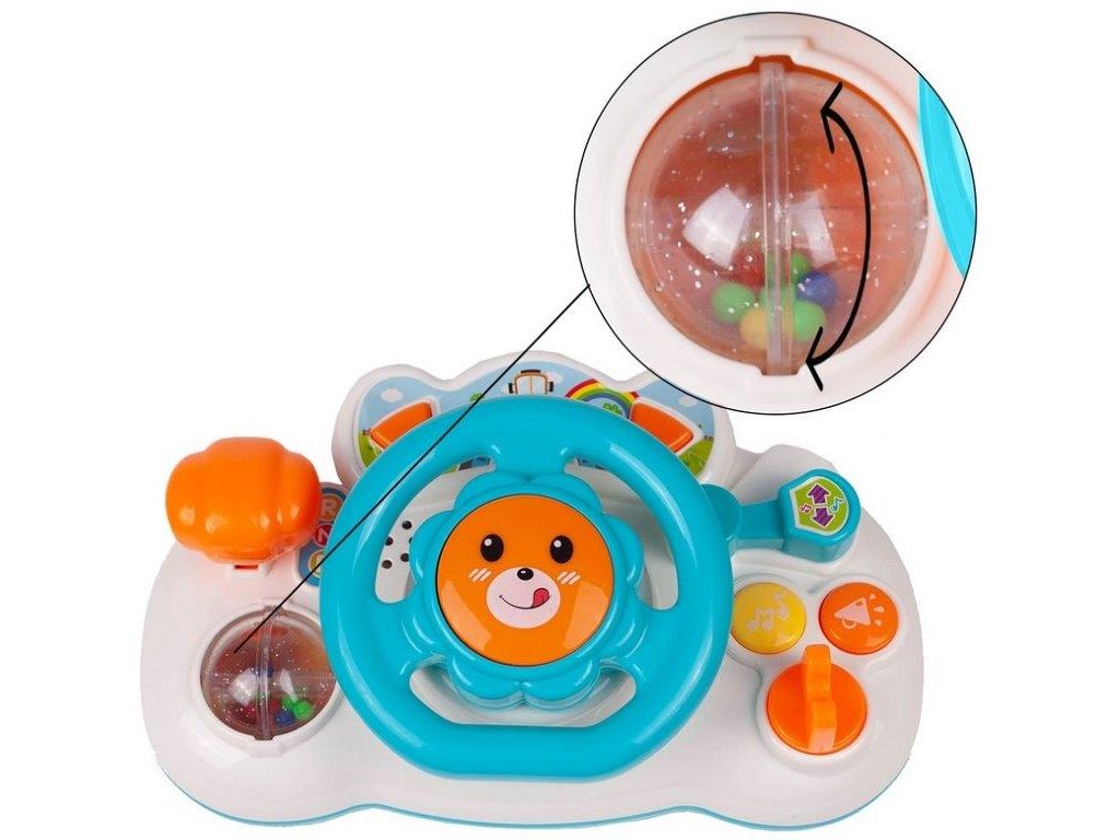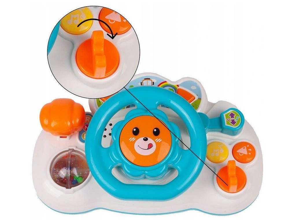 Interaktivní volant se zvuky a světly Lion Driver je ideální hračkou pro ty nejmenší děti. Umožní dítěti rozvíjet hmat, zrak a sluch. Volant je vybavený různými tlačítky a páčkami, které spouští melodie, zvuky klaksonu, jedoucího auta. Má také směrová světla a pohyblivou řadící páku. Hračka je určena pro děti od 18 měsíců věku.
