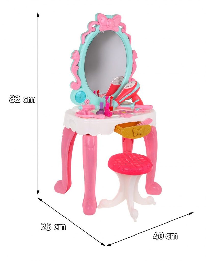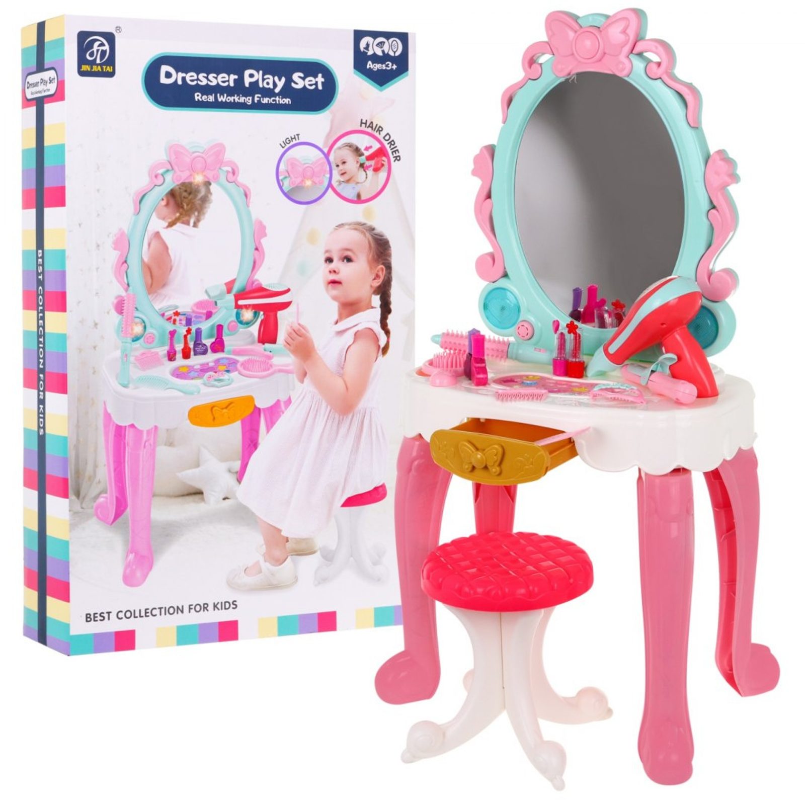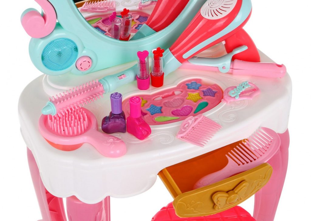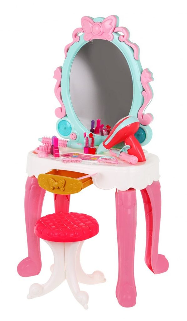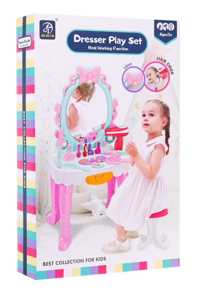 Toaletní stoleček Play Dresser II musí být součástí pokojíčku každé malé princezny. Je vybaven spoustou důležitých věcí pro každou malou parádnici. Set obsahuje imitace kosmetiky, hřeben, kulmu a další příslušenství. Ve stolku je také praktický šuplíček na drobnosti. Pro ještě větší zábavu má stoleček světelné efekty a vydává melodie. Fén na baterie fouká vzduch jako by byl skutečný. Hračka je určena pro děti od 36 měsíců věku.