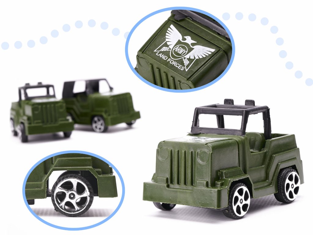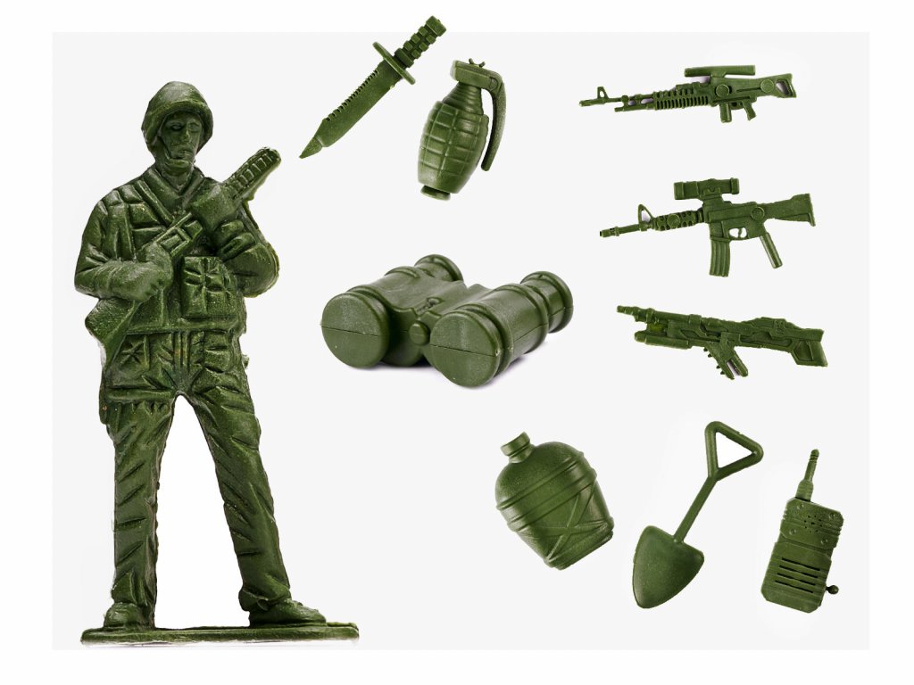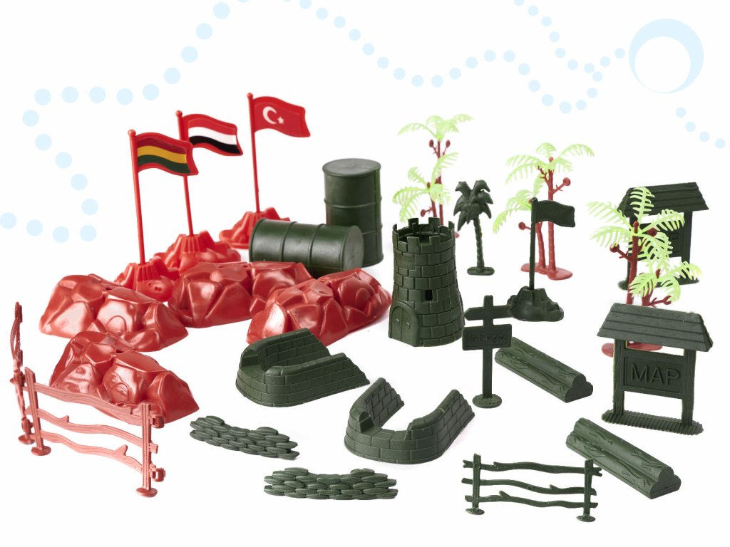 Velká sada plastových vojáčků Battle Squadron s příslušenstvím je ideální hračkou pro všechny děti které mají rádi armádu a bitvy. Vojáčci jsou provedeni ve dvou barvách: hnědá a zelená a jsou v různých pozicích. Součástí sady jsou také auta, tanky, zbraně, stromečky, granáty, rakety a další. Vše je uloženo v praktickém plastovém boxu s horním úchytem pro snadné přenášení. Hračka je určena pro děti od 3 let věku.