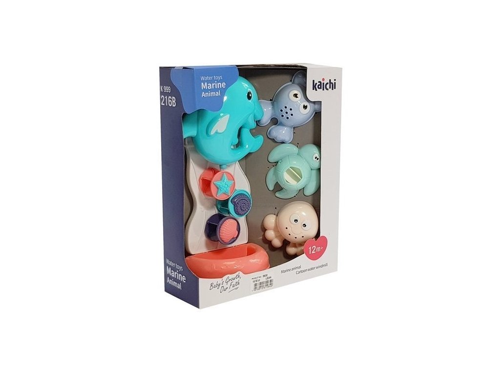 Sada vodních hraček Marine Animal je ideální hračkou pro ty nejmenší děti pro překonání prvotního strachu z vody. Sada je vhodná do koupelny i do dětských bazénků. Skládá se ze 3 vodních zvířátek a základny do které se nalévá voda. Ta spouští vodopád, který roztáčí válečky s mušlí, hvězdicí a šnekem. Hračka je určena pro děti od 12 měsíců věku.
