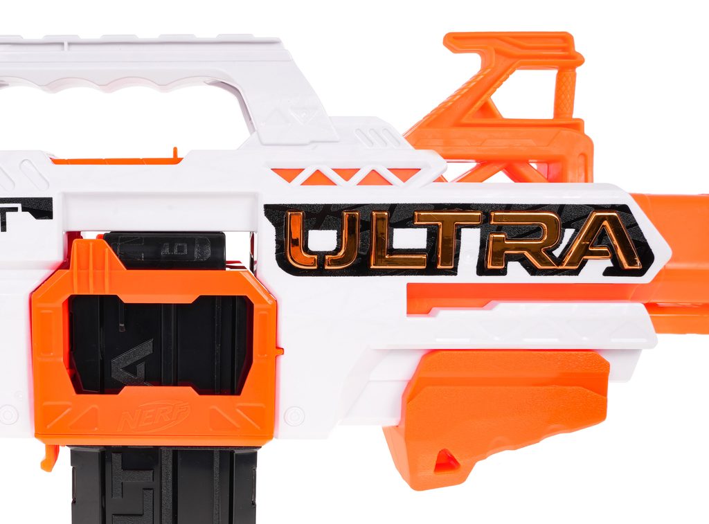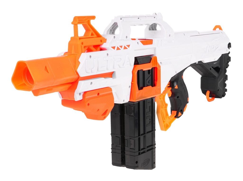 Dětský odpalovač Nerf Ultra Select je revoluční novinkou, se kterou si užijete zábavu na maximum a je snem každého chlapce. Do zbraně můžete nabít 20 nábojů, které se vkládají do dvou zásobníků. Zbraň má možnost rychlé střelby a přepínání mezi zásobníky. Je napájena bateriemi, které nejsou součástí balení. Dosah střely je až 36 metrů. Jedná se o skvělou zábavu pro chlapce a můžete nám věřit, že ke hře s tímto samopalem se rádi zapojí i tatínkové.