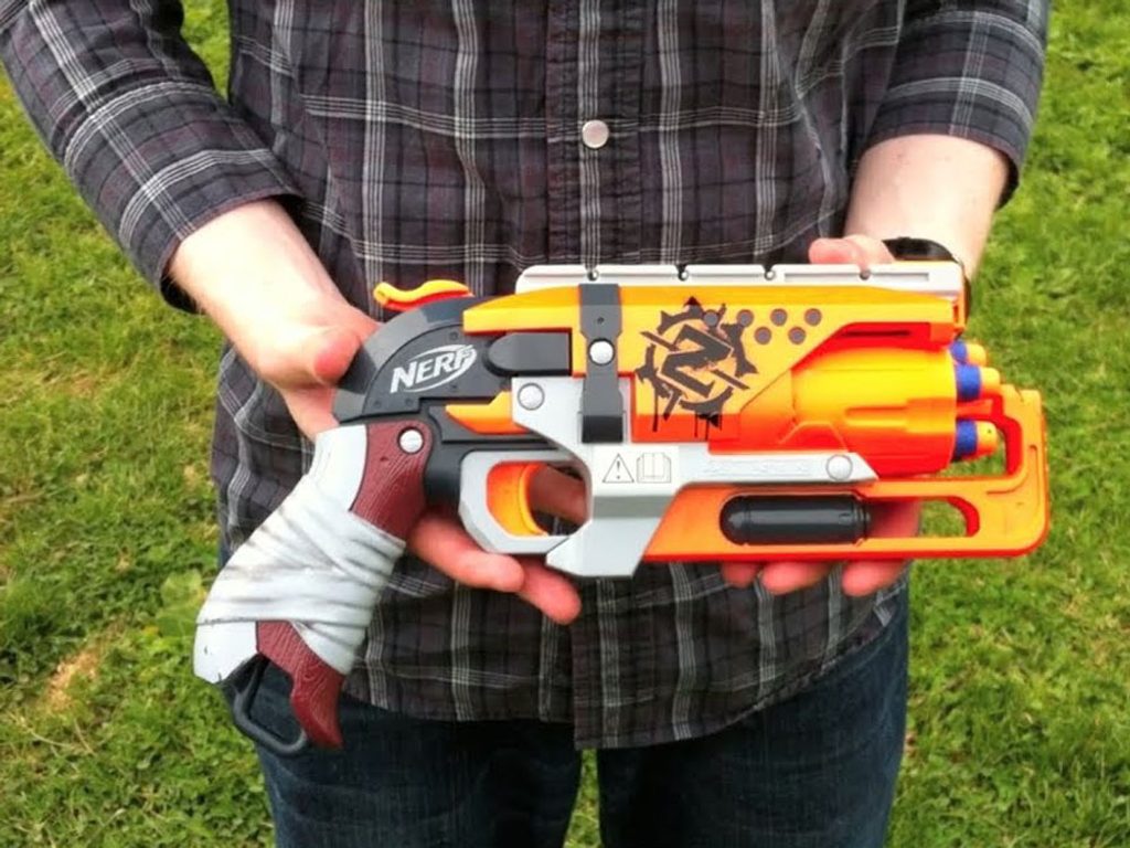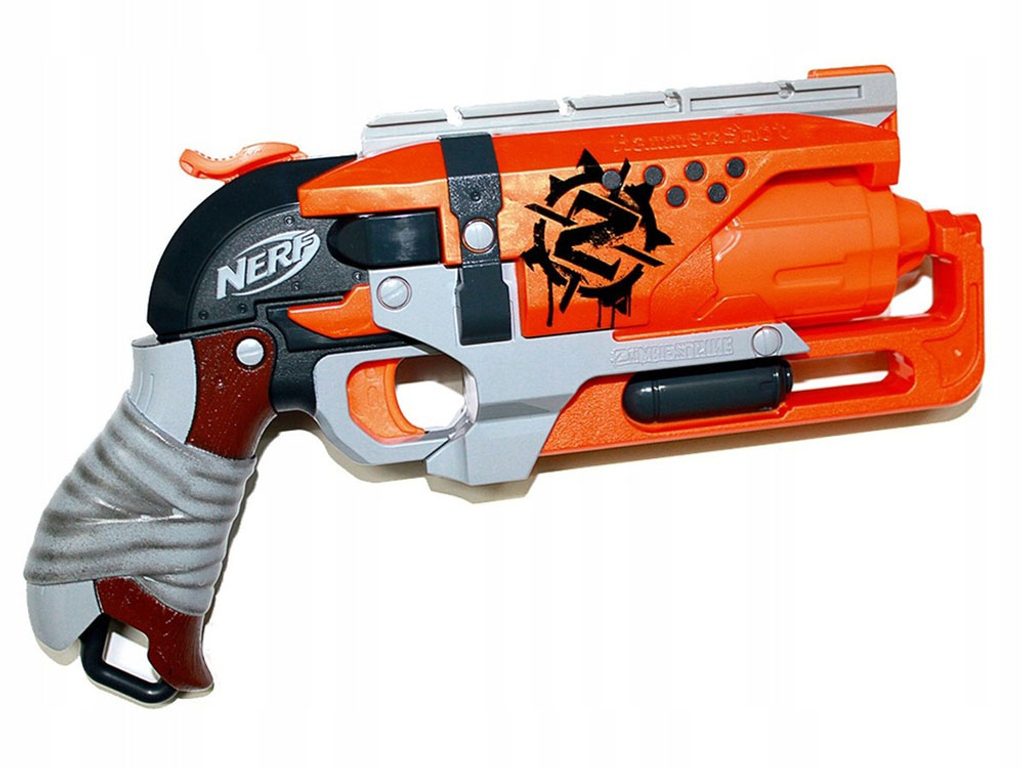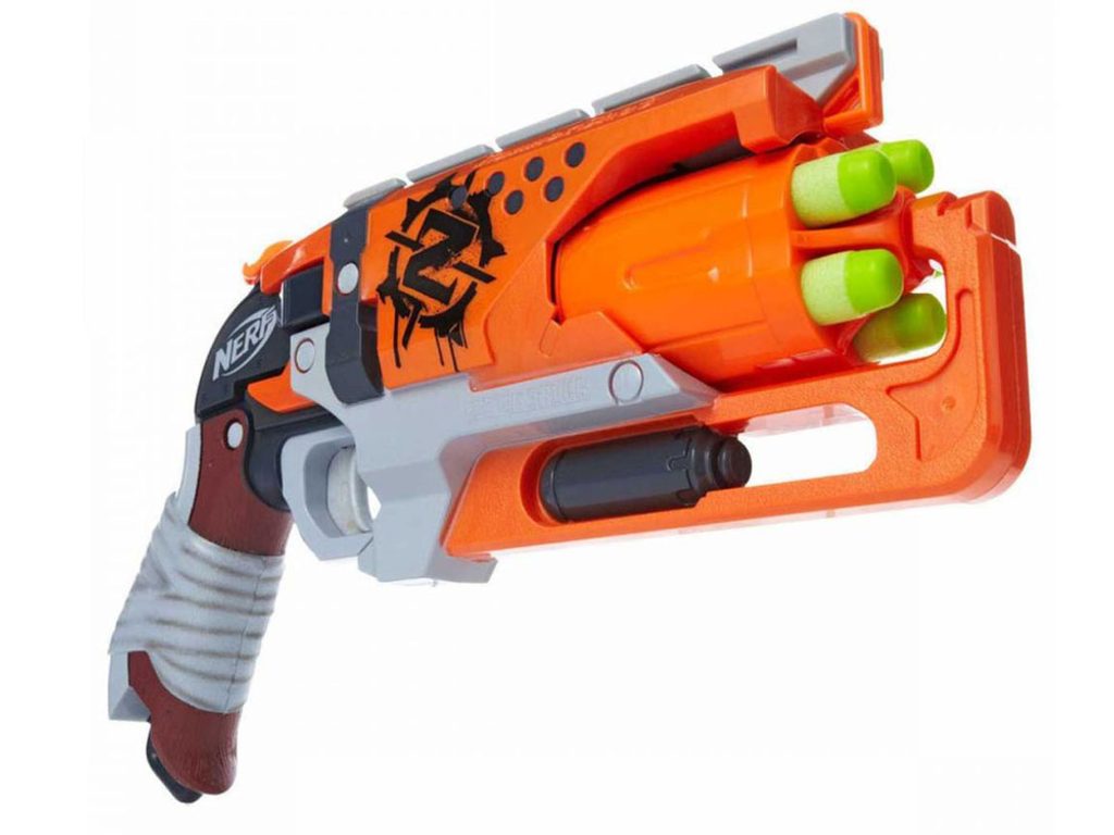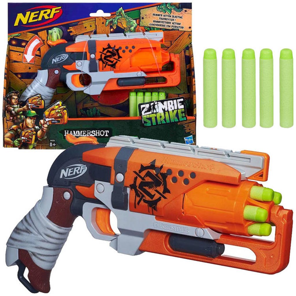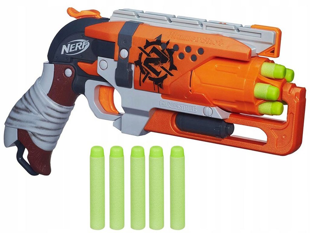Dětský odpalovač Nerf Zombie Strike je revoluční novinkou, se kterou si užijete zábavu na maximum a je snem každého chlapce. Do zbraně můžete nabít 5 nábojů, které se vkládají do otočného zásobníku. Zbraň se nabíjí posunutím oranžového jazýčku spouště palcem a následným stisknutím (mladší děti si při nabíjení musí pomáhat druhou rukou). Má jednu taktickou lištu a rukojeť, kterou lze protáhnout popruh. Dosah střely je asi 20 metrů. Jedná se o skvělou zábavu pro chlapce a můžete nám věřit, že ke hře s tímto samopalem se rádi zapojí i tatínkové.