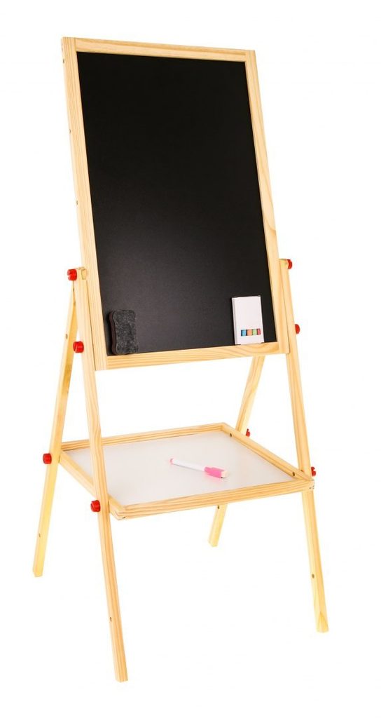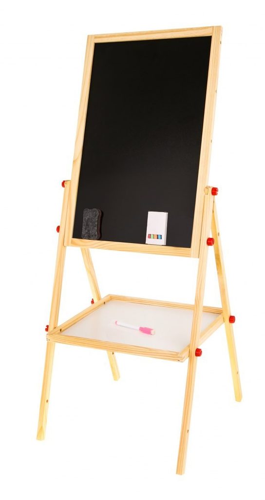 Oboustranná kreslící tabule Drawing Board je skvělou hračkou při nauce psaní a kreslení. Jedna strana tabule slouží pro psaní křídou, druhá strana slouží pro psaní a kreslení fixem. Ve spodní části tabule je umístěna praktická polička. Součástí sady je fix s magnetem, barevné křídy a houbička. Tabuli lze jednoduše složit, zabere tak velmi málo místa. Tato hračka je určena pro děti od 3 let věku.