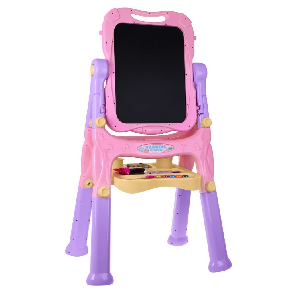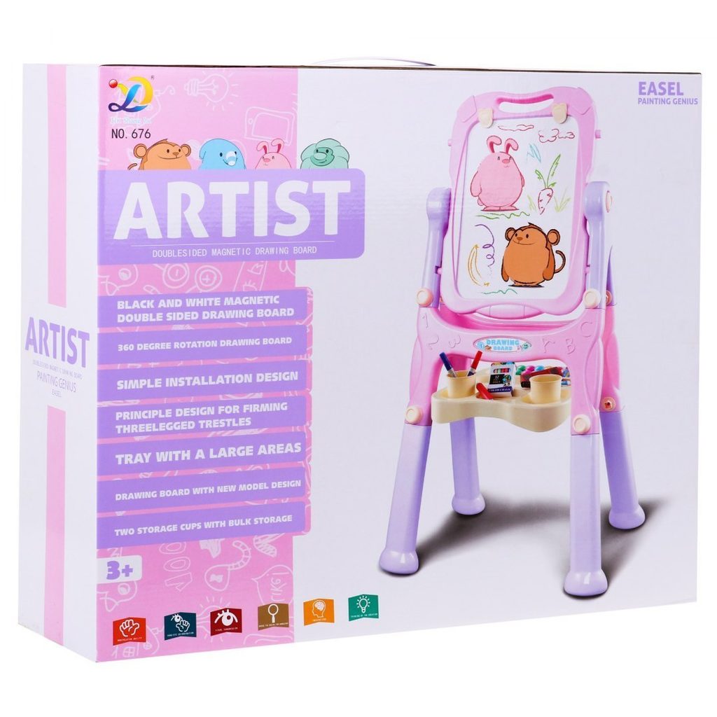 Oboustranná kreslící tabule Little Artist je skvělou hračkou při nauce psaní a kreslení. Jedna strana tabule slouží pro psaní křídou, druhá bílá strana slouží pro psaní a kreslení fixem. Na obě strany lze připevnit magnetky, které jsou součástí balení. Ve spodní části tabule je umístěna praktická polička. Součástí sady jsou fixy, křída, houbička, magnetky a svorky na připevnění papíru. Tabule je otočná o 360° a lze ji jednoduše složit, zabere tak velmi málo místa. Tato hračka je určena pro děti od 3 let věku.