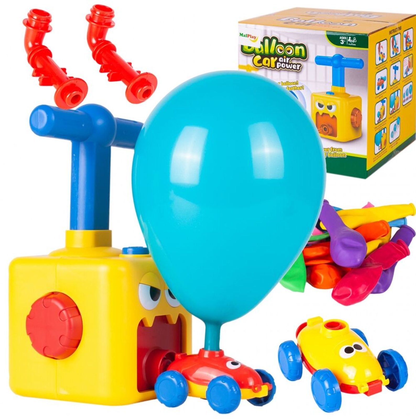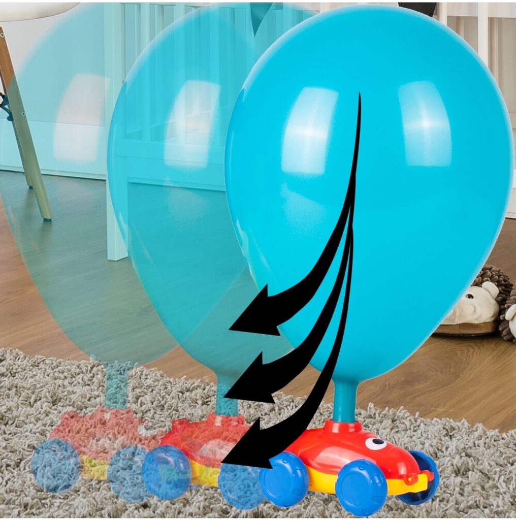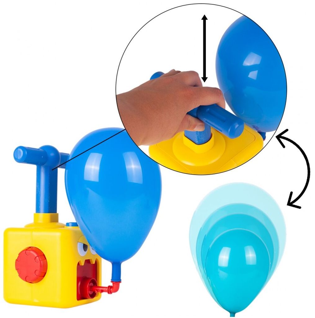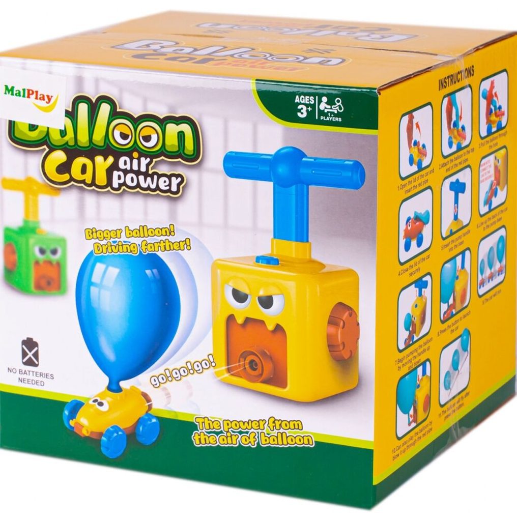 Odpalovač autíček s nafukovacími balónky Balloon Car rozvíjí manuální schopnosti dítěte a šikovnost jeho malých ručiček. Princip hračky je velmi jednoduchý. Pomocí základny - čerpadla napumpujete do balónku v autíčku vzduch a poté stisknutím tlačítka se autíčko rozjede dopředu. Autíčko je tedy poháněné vzduchem z balónku. Je to vynikající hračka na procvičování trpělivosti a koordinace, která zároveň pozitivně ovlivňuje představivost u dětí. Určeno pro věk od 3 let.
