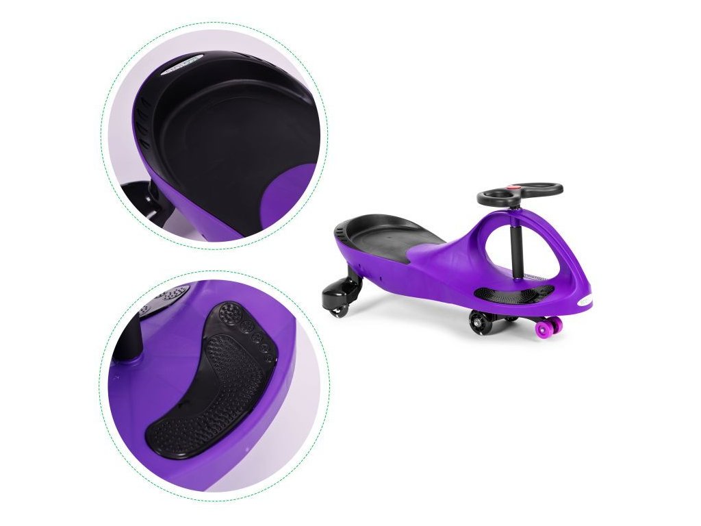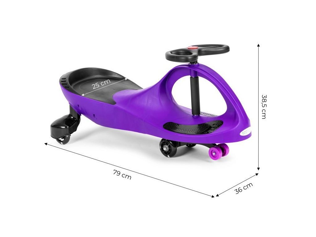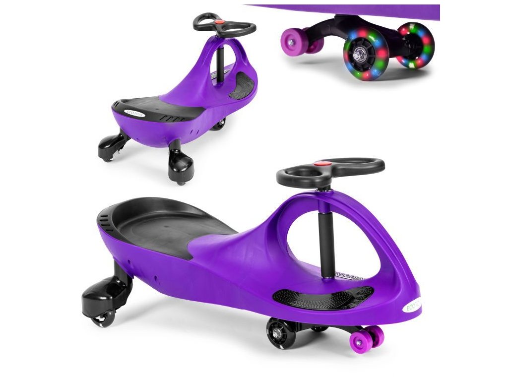 Dětské gravitační odrážedlo Spinner zaručí Vašemu dítěti spoustu zábavy a legrace. Jeho pohyb spočívá ve střídání pohybů volantu bez použití nohou. Podporuje správný vývoj dítěte využitím energie a její přeměnou v pohyb. Je vhodné pro použití venku i doma. Díky kaučukovým kolečkům s LED osvětlením se vyhnete poškození podlahy. Při správné rychlosti začnou kola svítit. Bezpečné hraní zajistí speciálně profilované sedátko a protiskluzové místo pro nohy. Odrážedlo umožňuje také umožňuje jezdit starším dětem a dokonce i rodičům. Je určeno pro děti od 3 let věku.