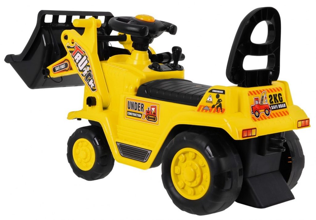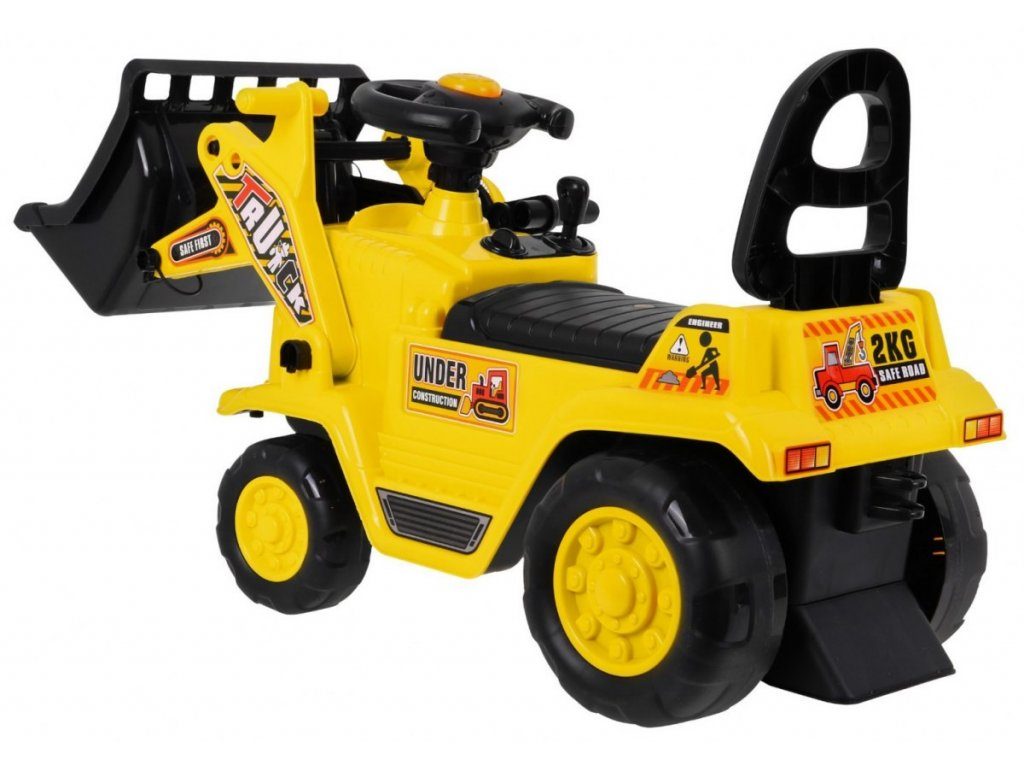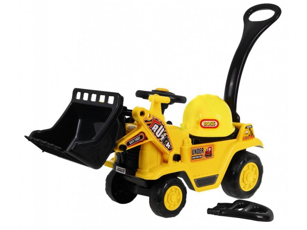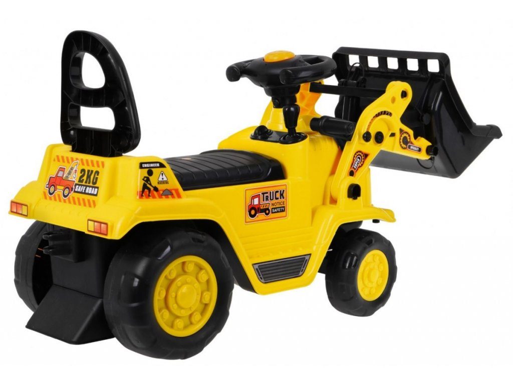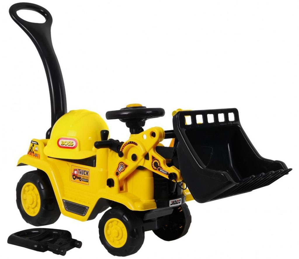 Dětské odrážedlo 2v1 Nakladač s otočnými předními koly a volantem zaručí Vašemu dítěti spoustu zábavy a legrace. Zábava na něm pomáhá k rozvoji manuálních schopností dítěte, rozvoji sluchu, zraku i hmatu. Lze ho využít dvěmi způsoby a to samostatné odrážedlo nebo jezdítko s vodící tyčí. Tyč a opěradlo ze jednoduše odejmout. Přední nakládací lžíce je pohyblivá. Pod sedadlem najdete praktický úložný prostor, který lze využít i jako nočník. V zadní části odrážedla je umístěn hák pro připojení přívěsu. Součásti balení je i praktická helma. Díky pestrému zářivému provedení jezdítko dítě nikdy neomrzí a bude pro něho stále zábavné. Vozítko je vyrobeno z kvalitního materiálu a je velmi stabilní. Hrát si s ním je absolutně bezpečné.