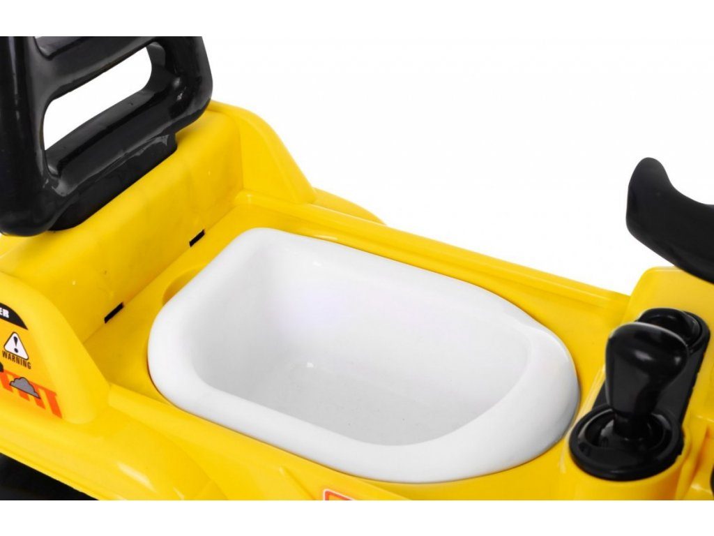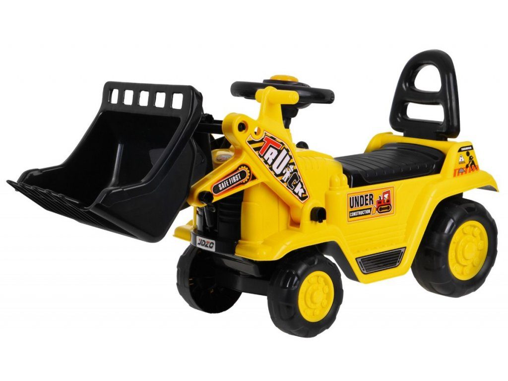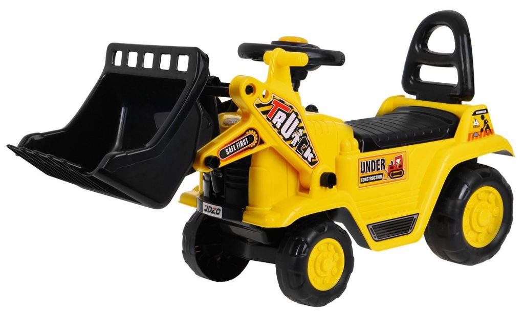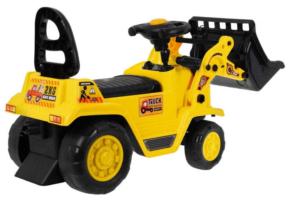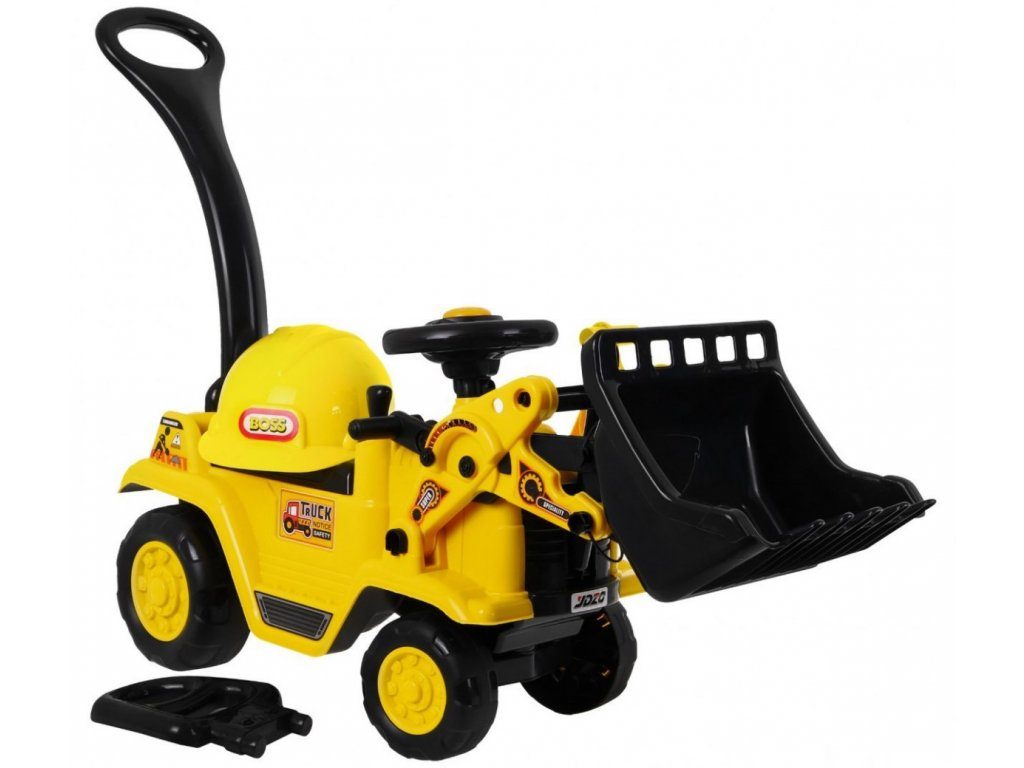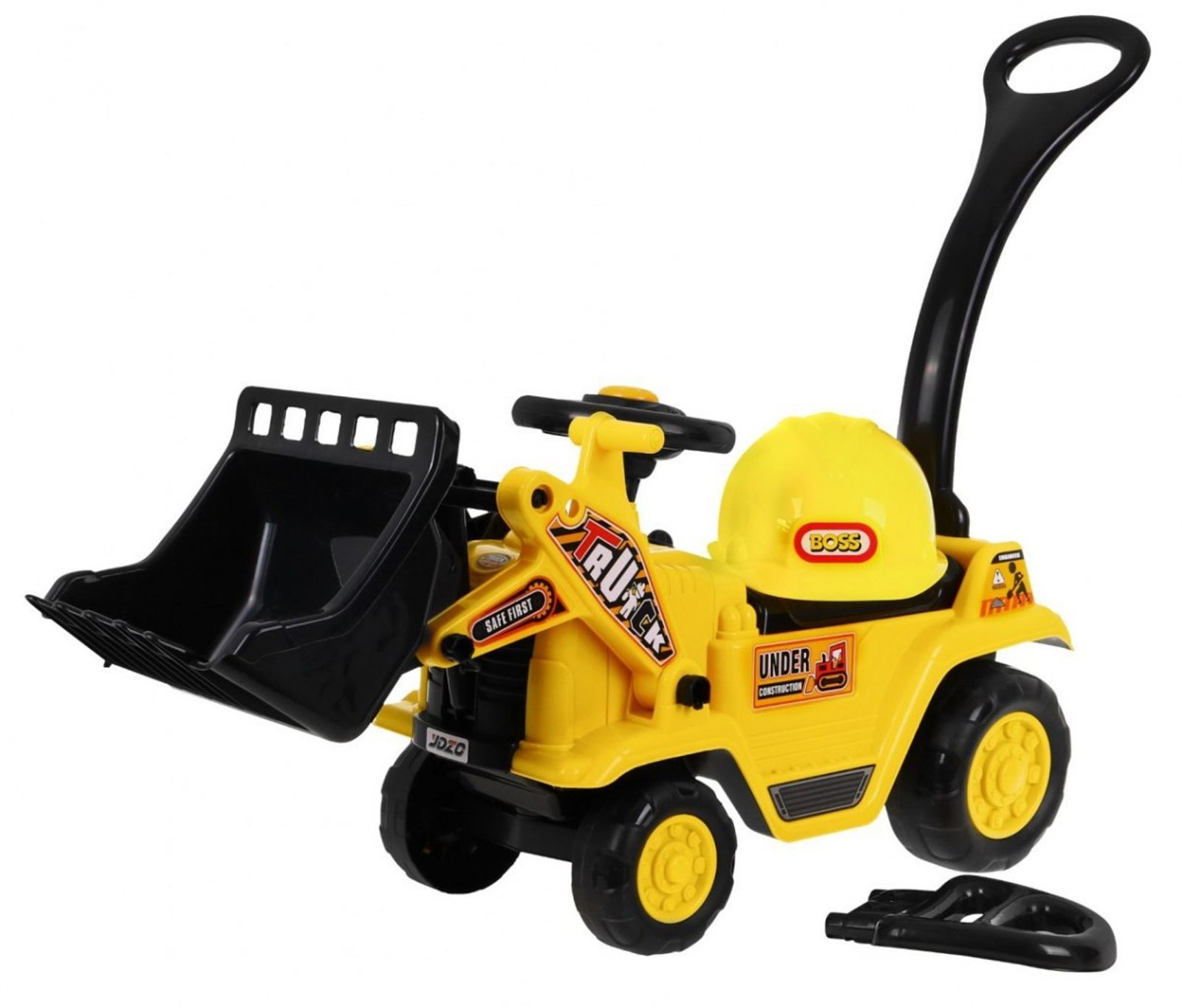 Dětské odrážedlo 2v1 Nakladač s otočnými předními koly a volantem zaručí Vašemu dítěti spoustu zábavy a legrace. Zábava na něm pomáhá k rozvoji manuálních schopností dítěte, rozvoji sluchu, zraku i hmatu. Lze ho využít dvěmi způsoby a to samostatné odrážedlo nebo jezdítko s vodící tyčí. Tyč a opěradlo ze jednoduše odejmout. Přední nakládací lžíce je pohyblivá. Pod sedadlem najdete praktický úložný prostor, který lze využít i jako nočník. V zadní části odrážedla je umístěn hák pro připojení přívěsu. Součásti balení je i praktická helma. Díky pestrému zářivému provedení jezdítko dítě nikdy neomrzí a bude pro něho stále zábavné. Vozítko je vyrobeno z kvalitního materiálu a je velmi stabilní. Hrát si s ním je absolutně bezpečné.