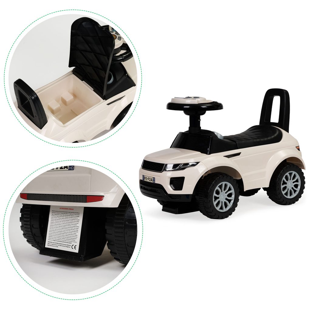 Kvalitní dětské odrážedlo vybavené pevnými plastovými koly o průměru 14 cm. Pod pohodlným sedátkem je umístěn úložný prostor pro hračky. Volant je interaktivní se zvuky a světýlky. Vhodné pro děti od 1,5-3 let. V přední a zadní části je umístěna ochrana proti překlopení. Tvar hračky pomáhá rozvíjet motorické schopnosti dítěte a navíc se bude cítit jako skutečný řidič.