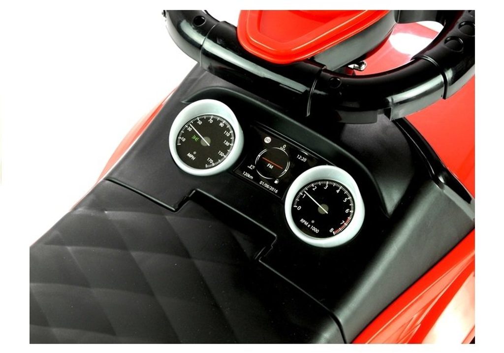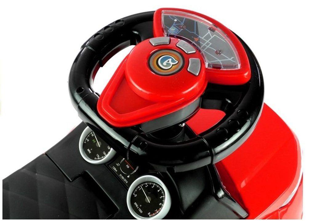 Kvalitní dětské odrážedlo vybavené pevnými plastovými koly o průměru 14 cm. Pod pohodlným sedátkem je umístěn úložný prostor pro hračky. Volant je interaktivní se zvuky a světýlky. Vhodné pro děti od 1,5-3 let. V přední a zadní části je umístěna ochrana proti překlopení. Tvar hračky pomáhá rozvíjet motorické schopnosti dítěte a navíc se bude cítit jako skutečný řidič.