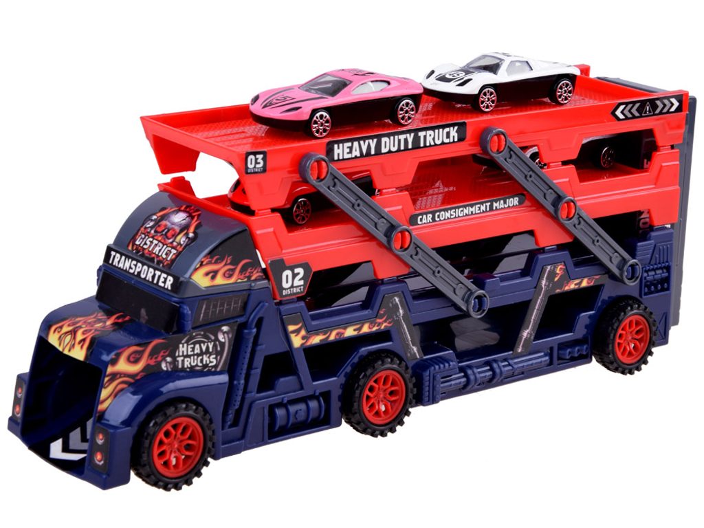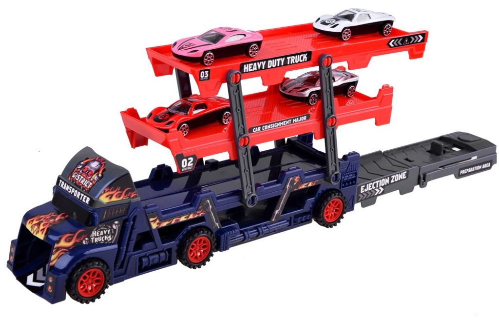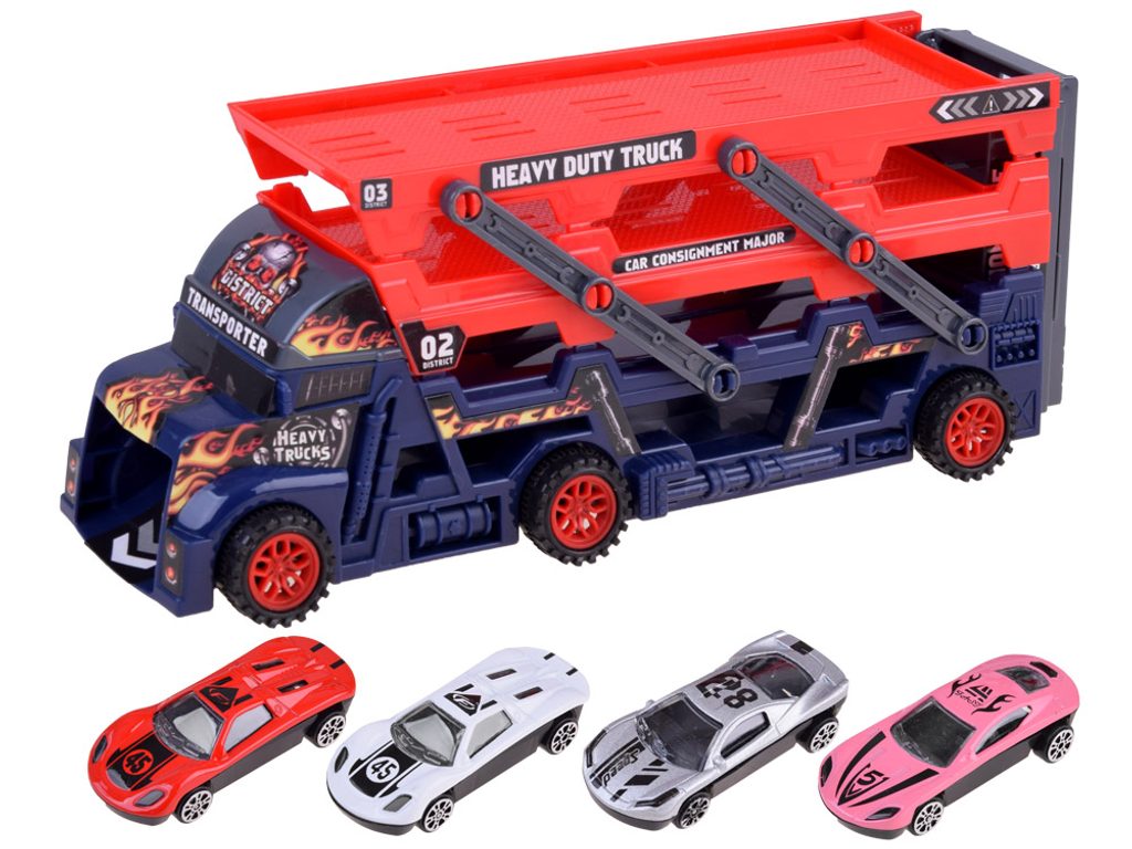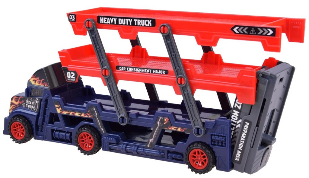 Odtahové autíčko Heavy Truck se skluzavkou a zadní rampou. Sestava obsahuje nákladní automobil s tříúrovňovou plošinou pro osobní automobily. Díky tomu, že je plošina rozložená, se všechny autíčka snadno vejdou. V zadní části vozu je odpružená rampa a autíčka mají výjezd vpředu. Součástí auta jsou 4 různá autíčka. Hračka je určena pro děti od 36 měsíců věku.