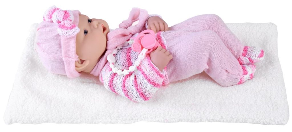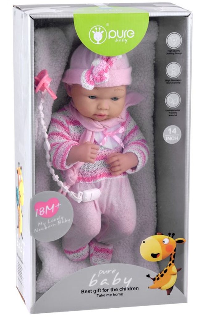 Panenka Baby Girl Noe v realistickém provedení s příslušenstvím udělá ohromnou radost každé holčičce. Panenku lze položit na dečku, které je součástí balení. Je vyrobena z materiálu velmi příjemného na dotek. Součástí sady je kromě panenky také dudlík s řetízkem. Hračka je určena pro děti od 18 měsíců věku.