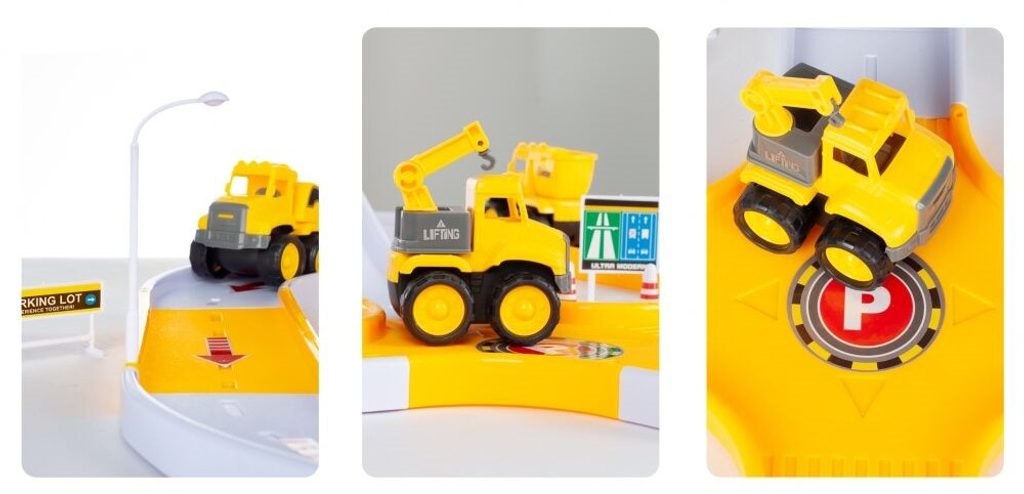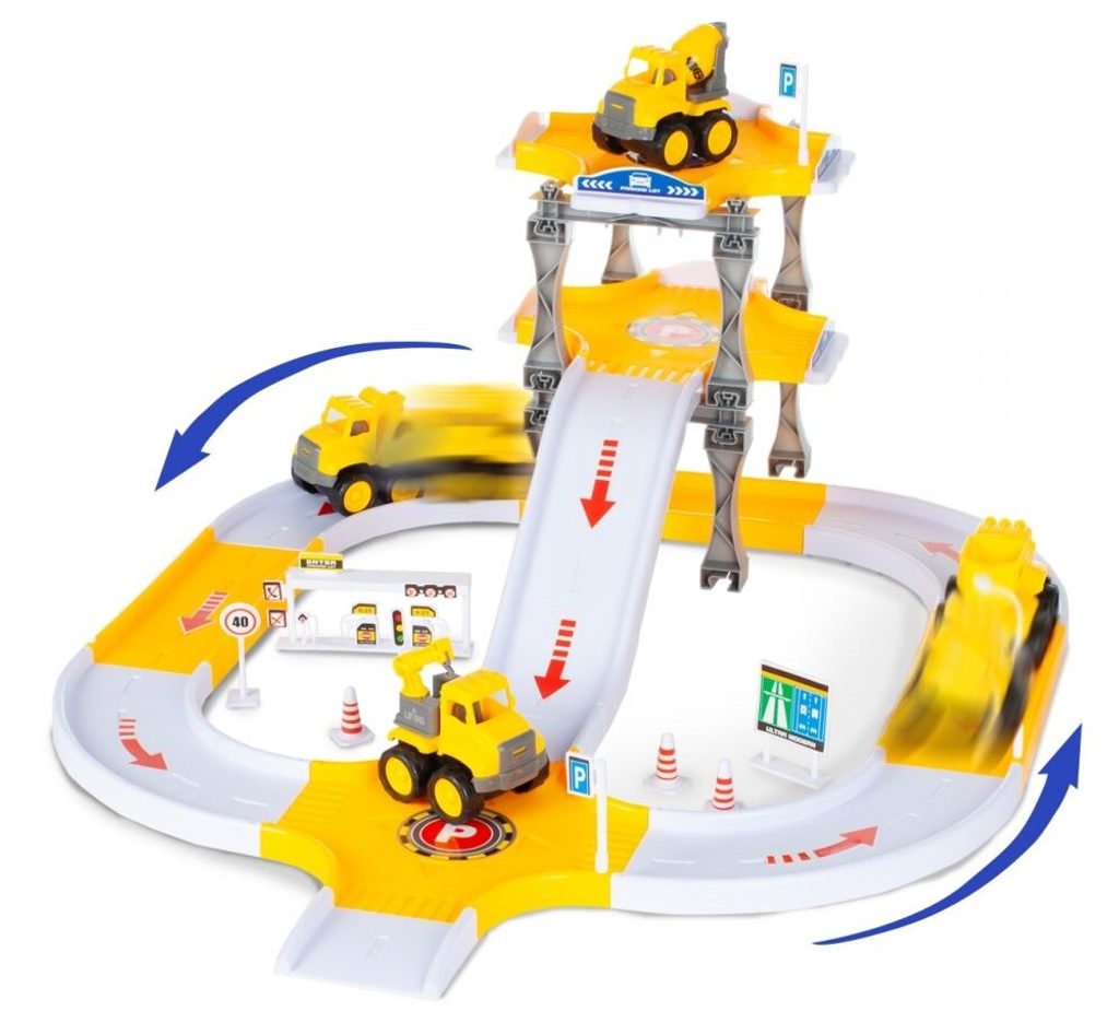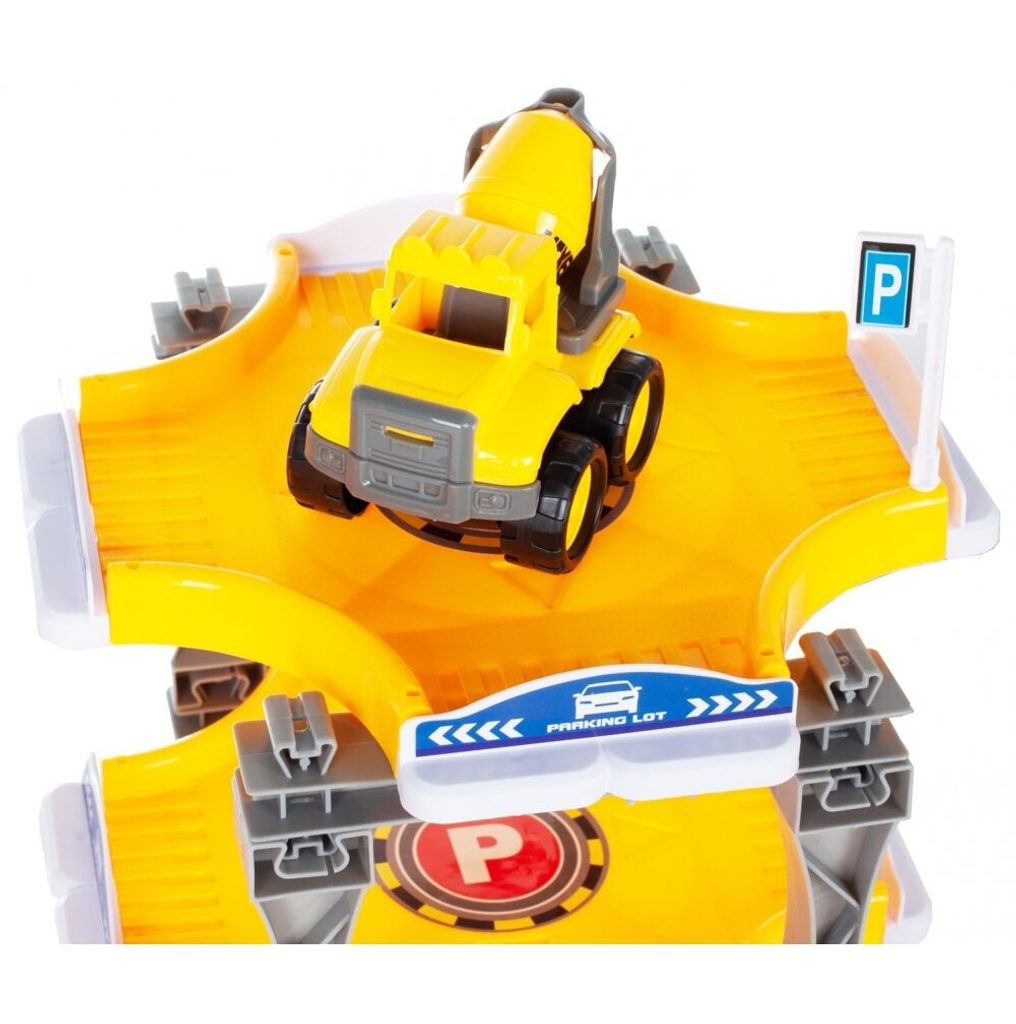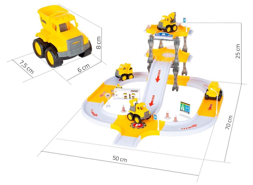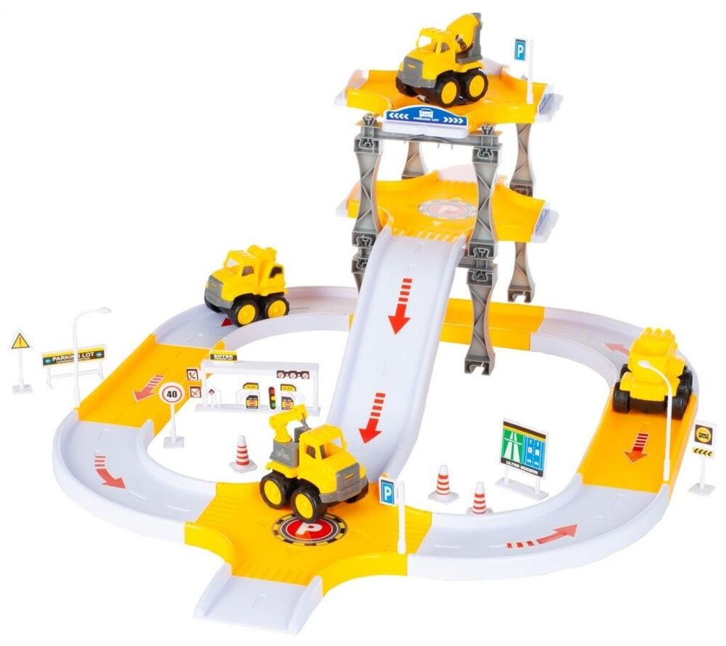 Dětská parkovací dráha se 4 stavebními stroji a příslušenstvím Big Size Lot. Horní patro je propojeno sjížděcí dráhou. Součásti jsou také dopravní značky a samolepky. Mladý motoristický nadšenec zde nalezne vše co potřebuje. Je vyrobena z plastu bez ostrých hran a určena pro děti od 3 let.