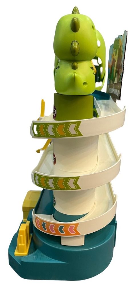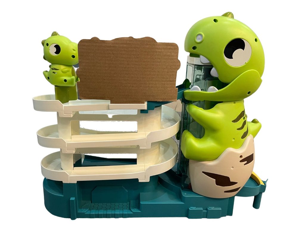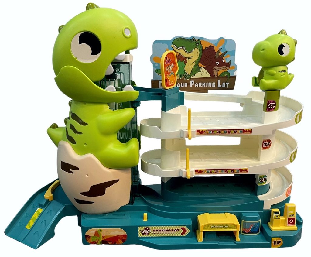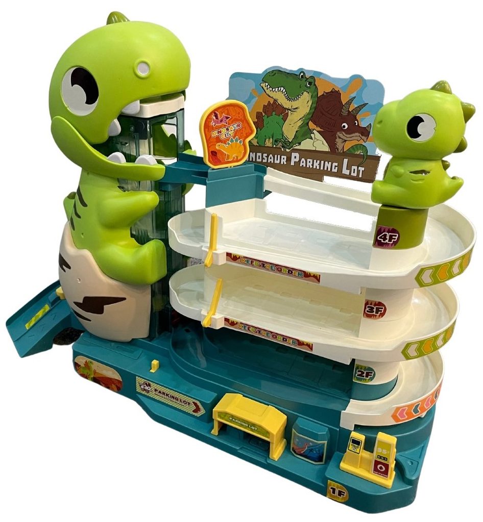 Dětská parkovací dráha se 6 autíčky, výtahem na baterie a dalším příslušenstvím Dinosaur Parking Lot. Jednotlivé patra jsou propojeny sjížděcí dráhou. Výtah na baterie je proveden jako dinosaurus s otevírací tlamou. Mladý motoristický nadšenec zde nalezne vše co potřebuje. Je vyrobena z plastu bez ostrých hran a určena pro děti od 3 let.