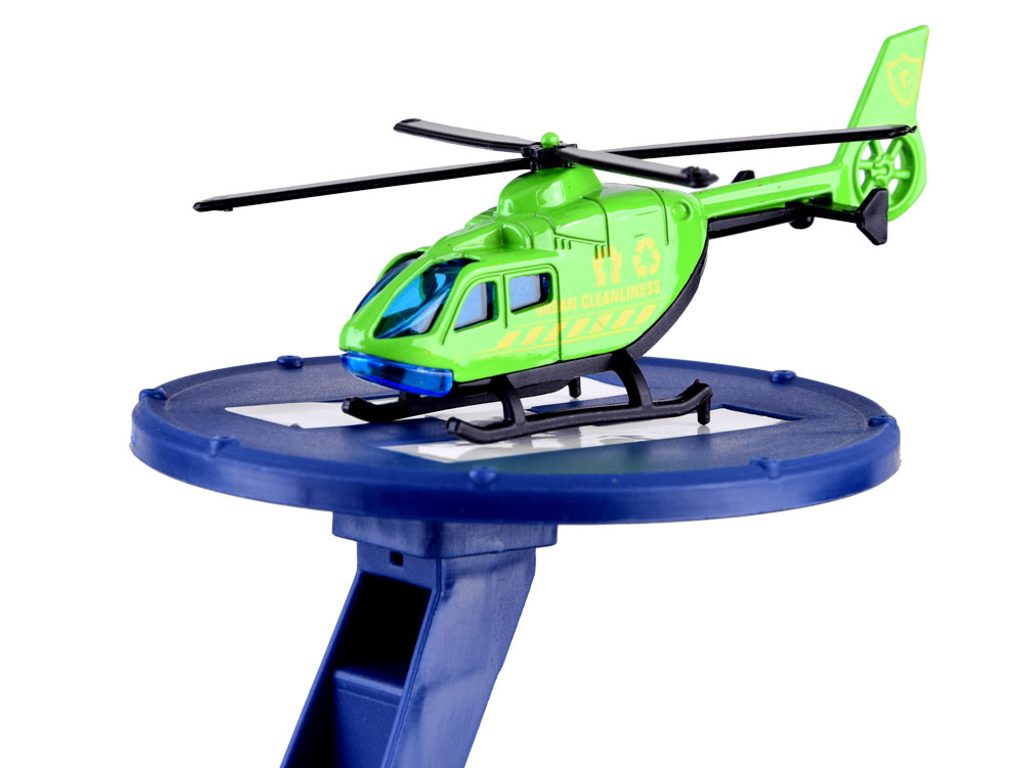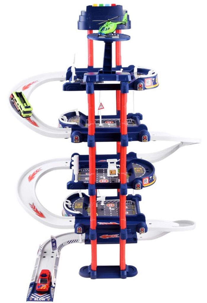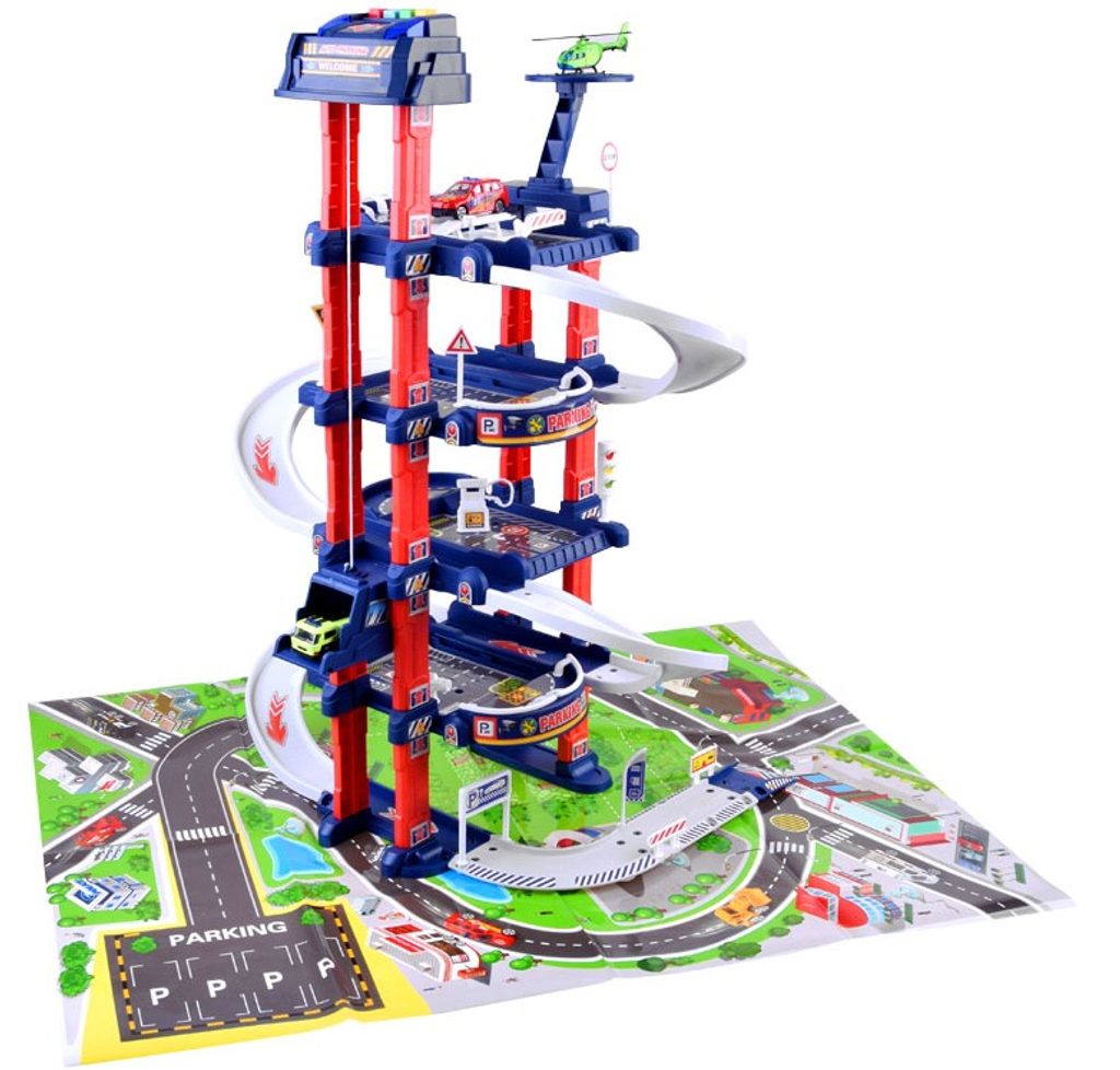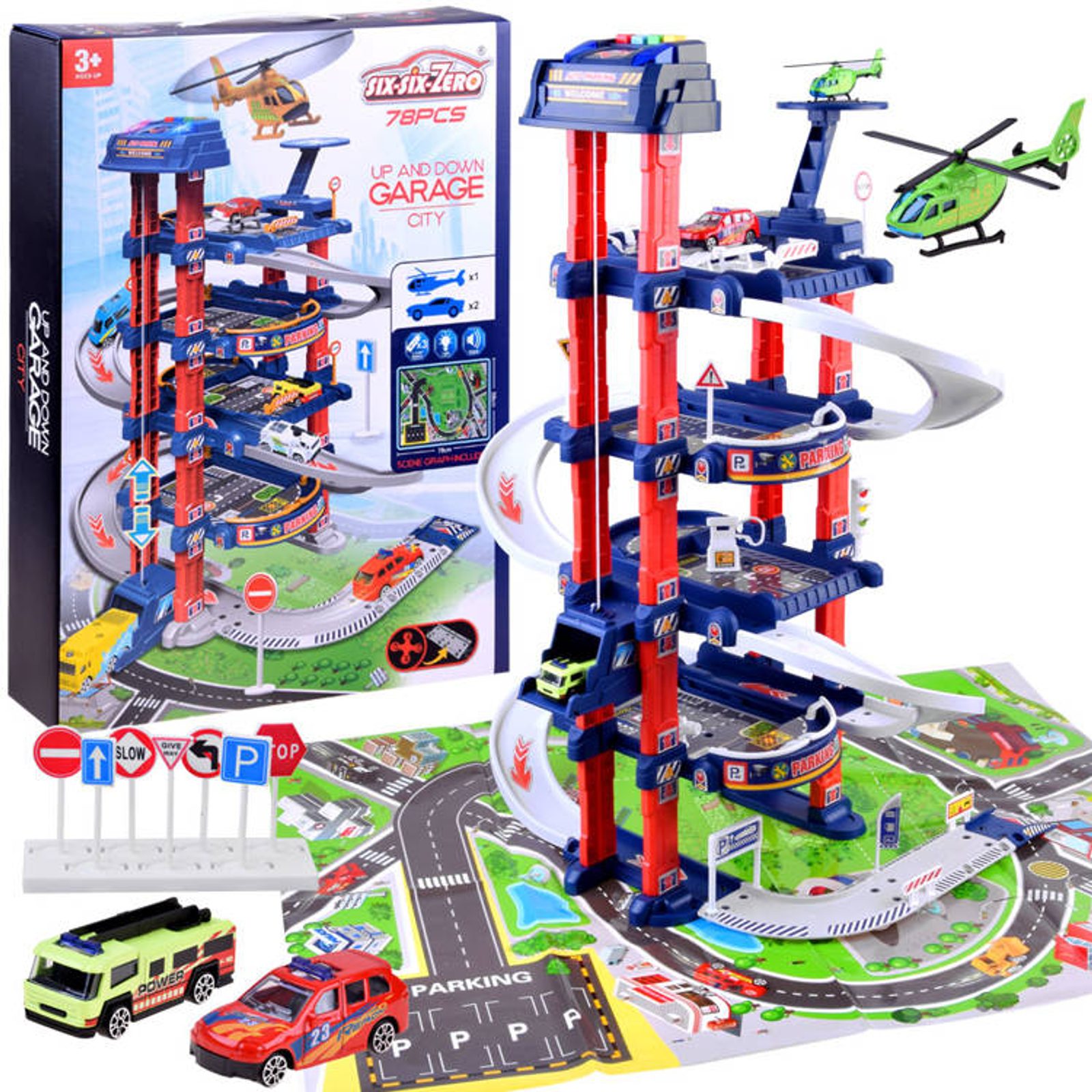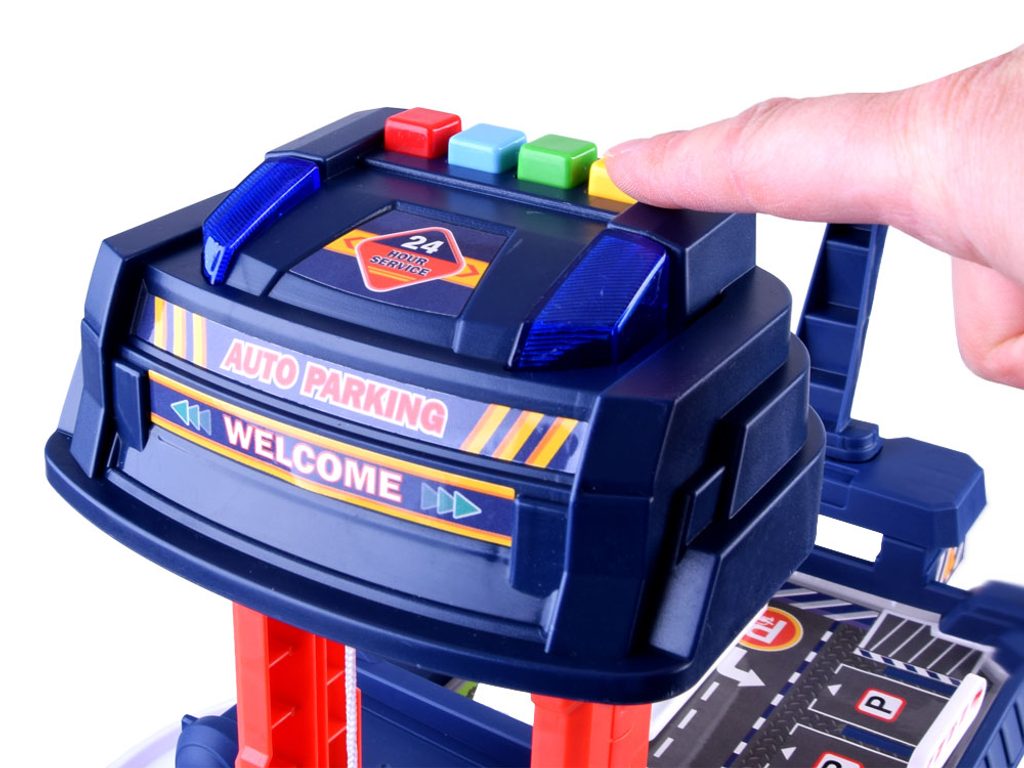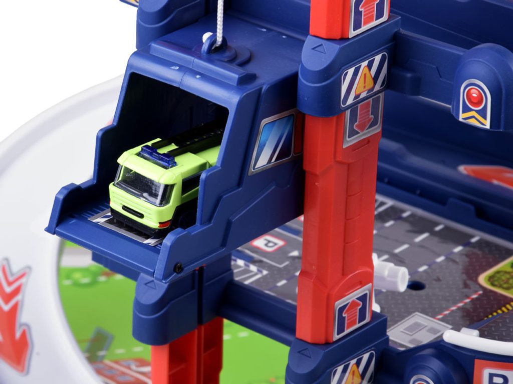 Dětská pětipatrová garáž se 2 autíčky, helikoptérou a pohyblivým výtahem a příslušenstvím City Garage. Všechna podlaží jsou propojena sjížděcí dráhou a také pohyblivým výtahem na baterie, který za jízdy bliká a vydává zvuky jízdy nahoru a dolů. Součástí sady je také barevná podložky s vyobrazenými cestami a budovami a také dopravní značky. Mladý motoristický nadšenec zde nalezne vše co potřebuje. Je vyrobena z plastu bez ostrých hran a určena pro děti od 3 let.