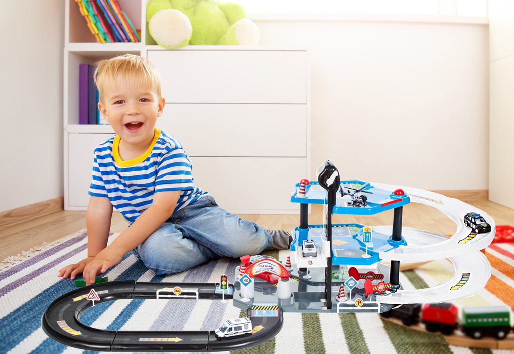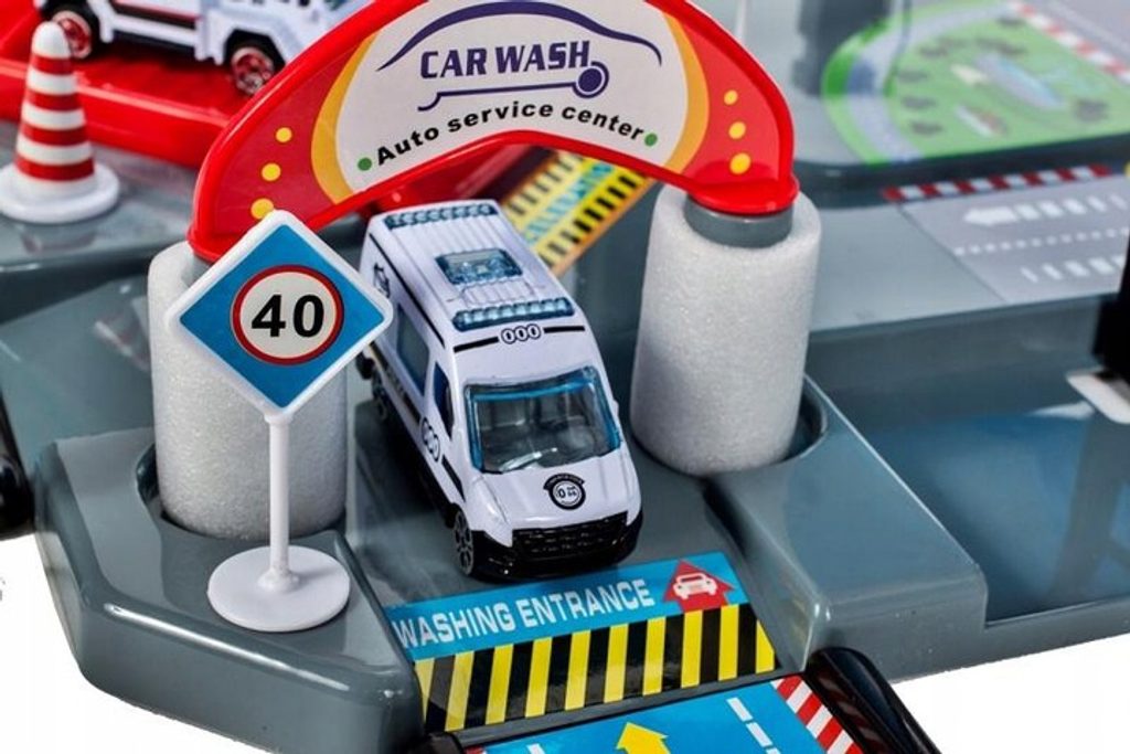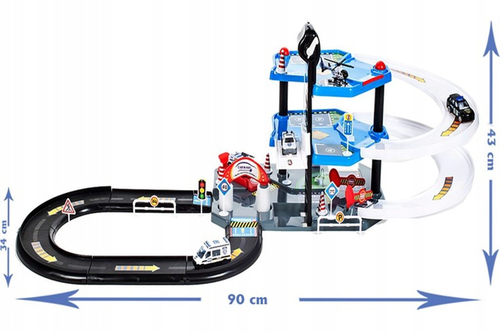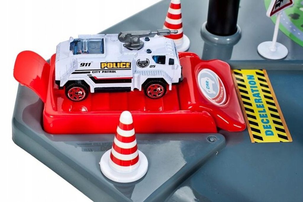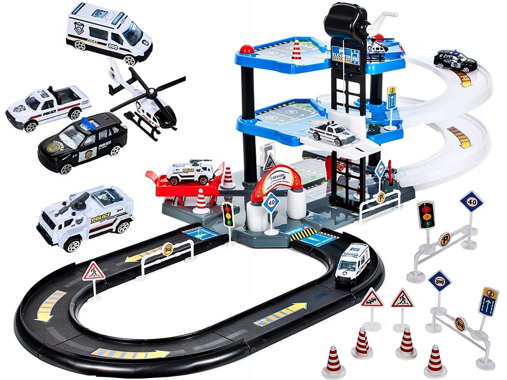 Dětská patrová garáž City Police se 4 různými policejními autíčky je ideální hračkou pro každého malého motoristu. Součástí parkoviště je pohyblivý výtah, který umožňuje přesouvat autíčka mezi jednotlivými patry, dopravní značení, skluzavka, dopravní značky a také vrtulník. Mladý motoristický nadšenec zde nalezne vše co potřebuje. Garáž je vyrobena z materiálu bez ostrých hran a je určena pro děti od 3 let věku.