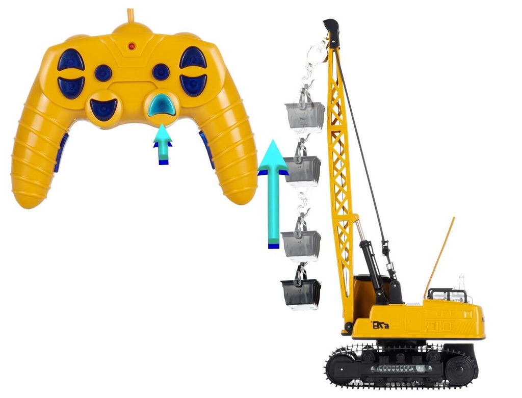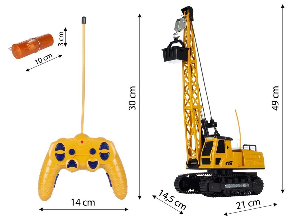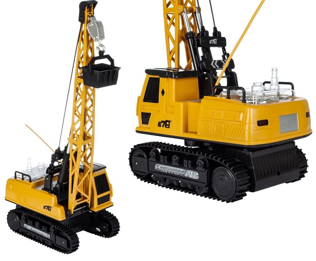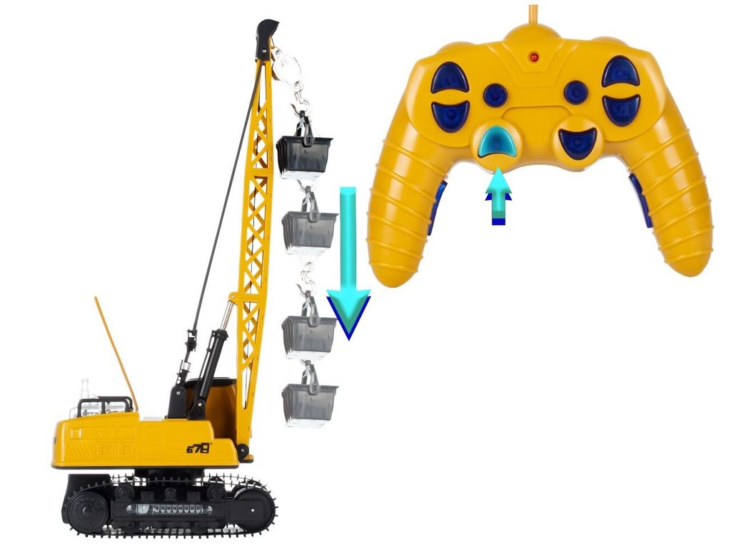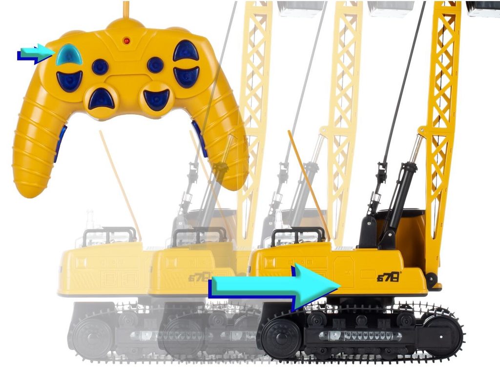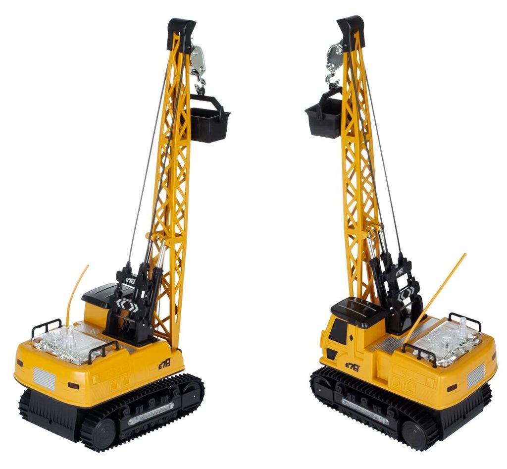 Pásový jeřáb na dálkové ovládání Cheetah 678 je ideální hračkou pro všechny malé konstruktéry. Jeho maximální výška je 49 cm, má otočné rameno a umožnuje zdvih nahoru a dolů. Sada obsahuje imitaci dřevěného kmene a nádobu na drobnosti a také LED osvětlení kabiny a pásů. Ovládání je velmi jednoduché, pomocí tlačítek na dálkovém ovladači. Jeřáb je vyroben z plastu a má certifikaci CE a je určen pro děti od 3 let věku.