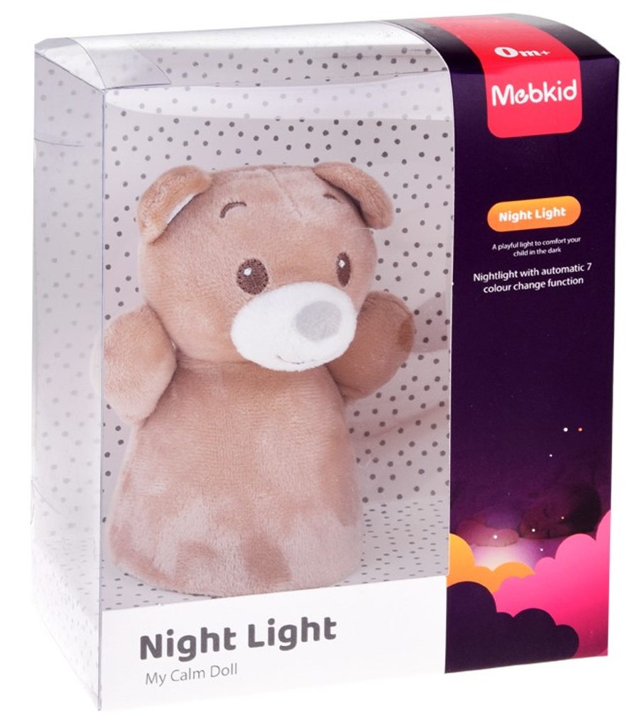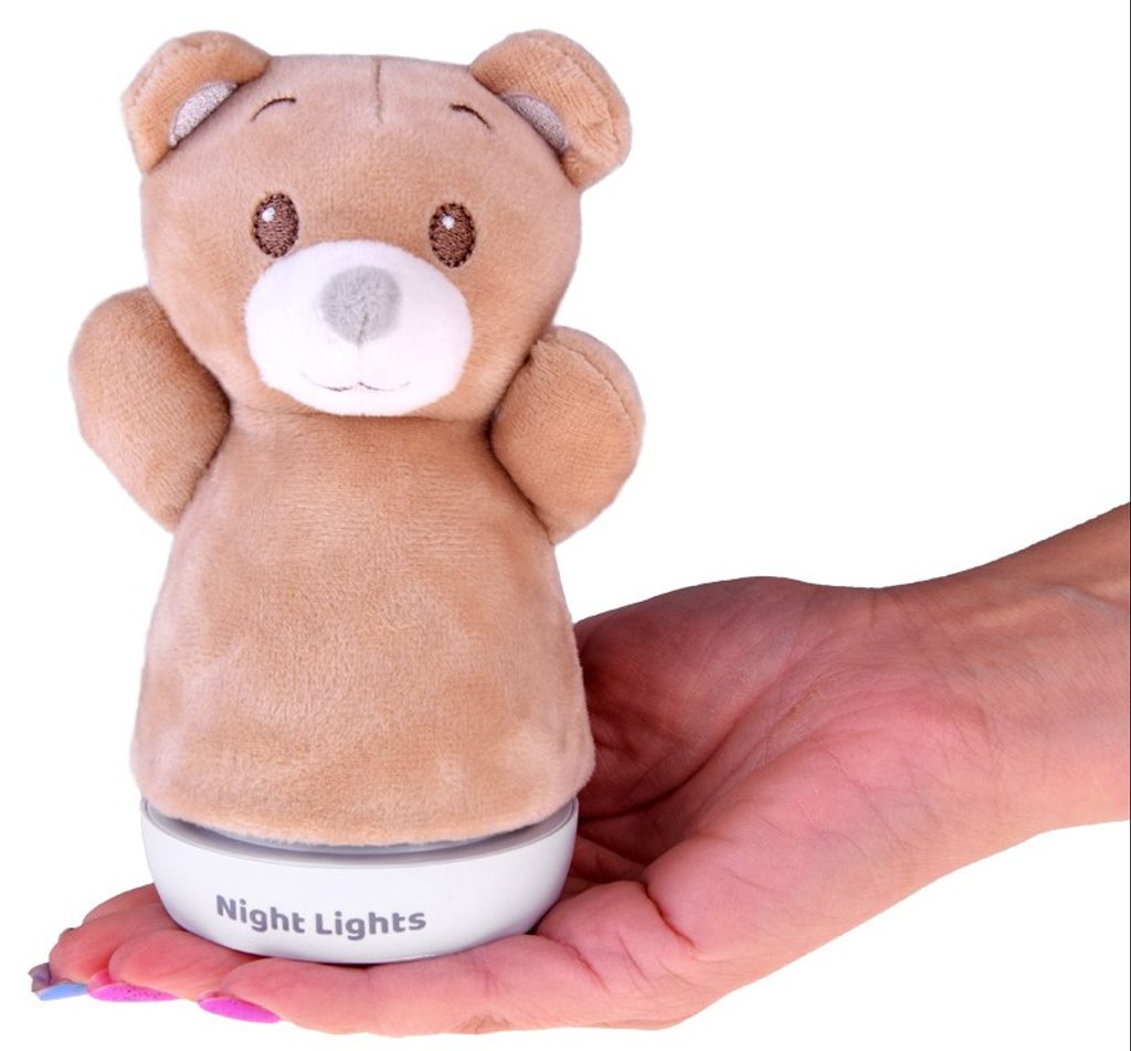 Plyšová noční lampička Medvídek je ideální hračkou pro ty nejmenší děti kdy jim pomůže snadno usnout. Je vyrobena z jemného na dotyk příjemného materiálu. Nahradí i funkci lampy, díky střídání barev bude perfektním pomocníkem při usínání Vašeho dítěte. Potah je snímatelný, lze ho využít jako usínáček.