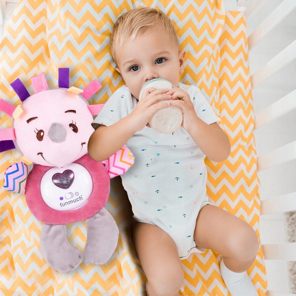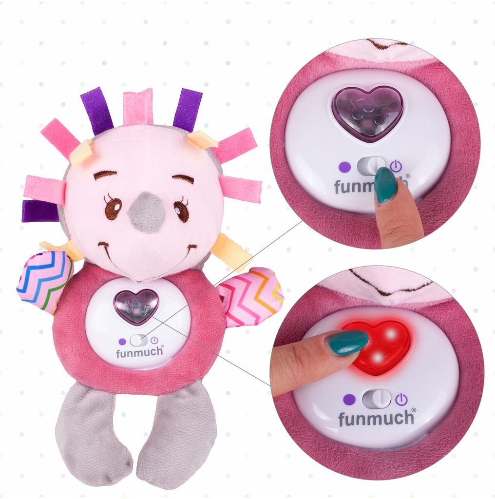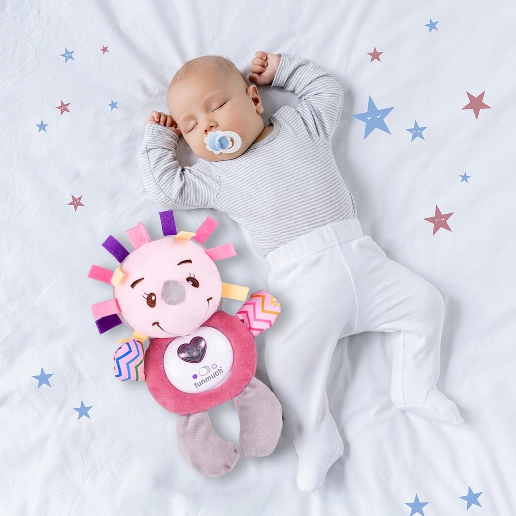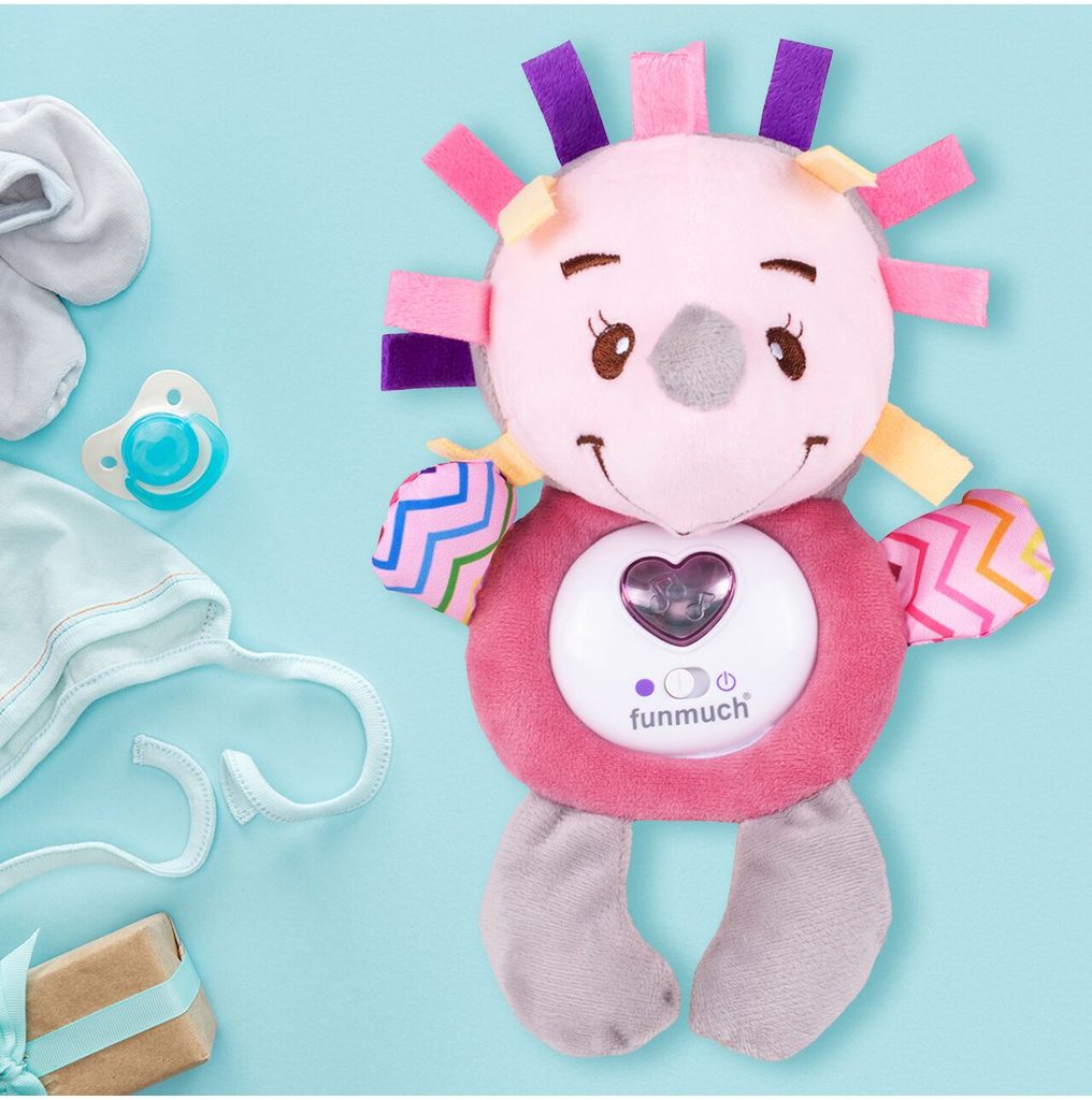 Interaktivní plyšový ježek Baby Calm je ideální hračkou pro ty nejmenší děti kdy jim pomůže snadno usnout. Je vyrobena z jemného na dotyk příjemného materiálu. Je vybavena různými písničkami, melodiemi a zvuky. Ty se přepínají zmáčknutím tlačítka ve tvaru srdíčka. To také během hry svítí. Hračka je určena pro děti od narození.