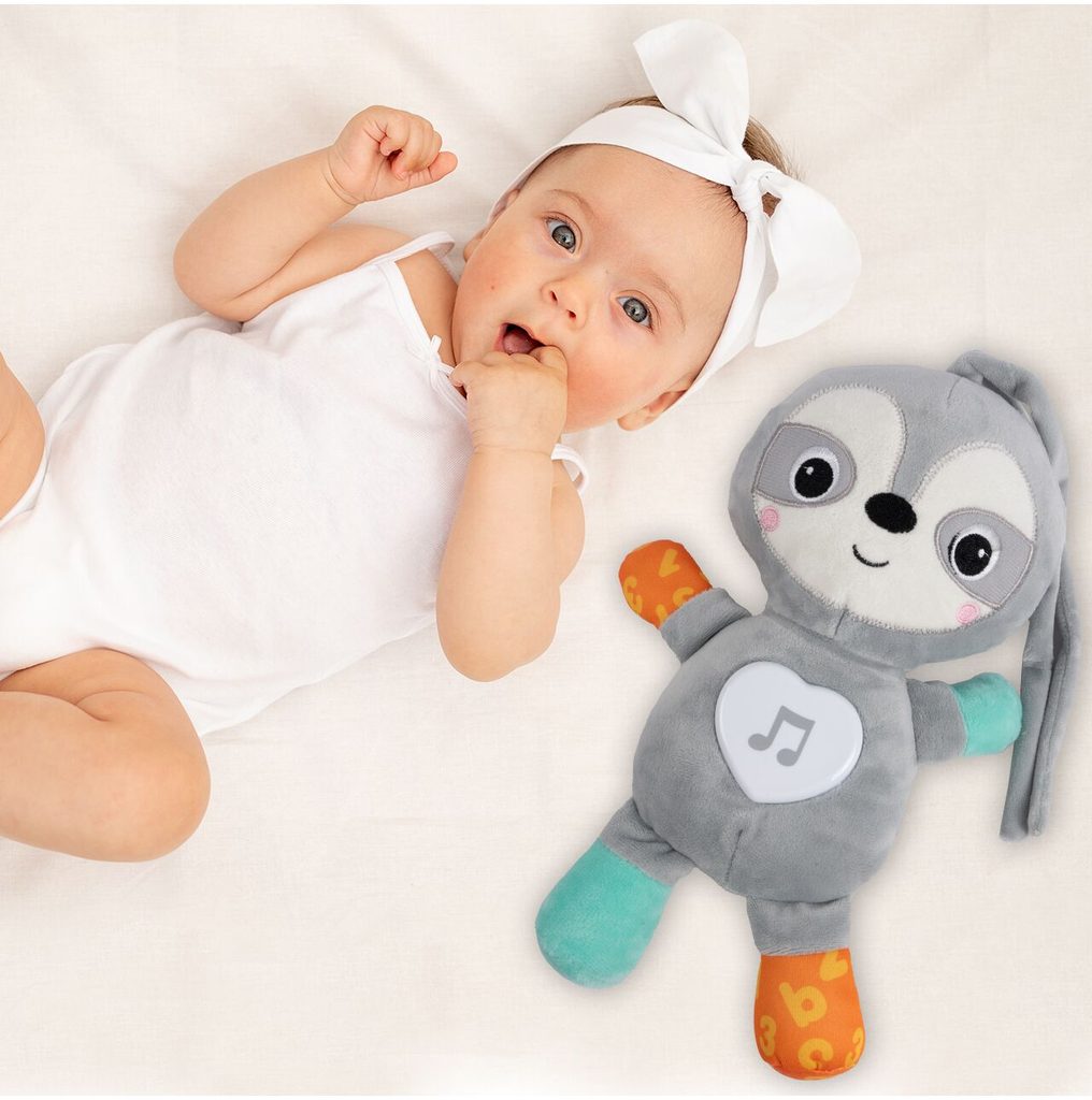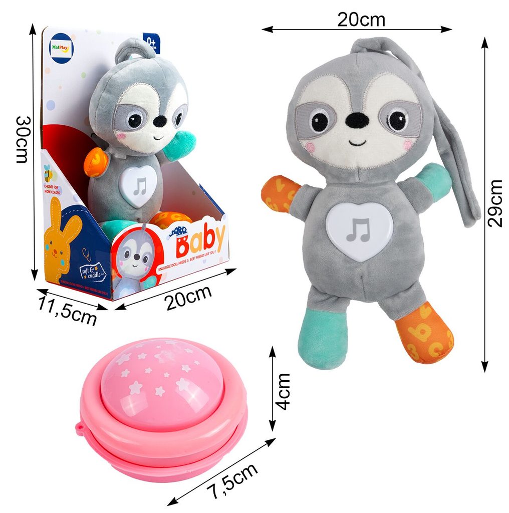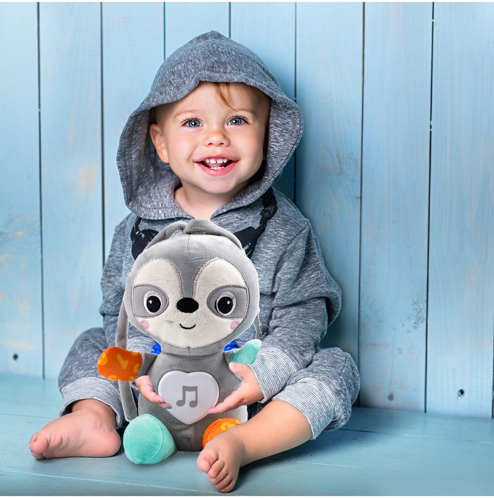 Interaktivní plyšový lenochod Little Animal je ideální hračkou nejmenší děti. Je vyroben z jemného na dotyk příjemného materiálu. Po zmáčkutí se spustí příjemné melodie. Na bříšku je umístěno svítící srdíčko. Vyjímatelný modul lze použít i samostatně. Hračka je určena pro děti od narození.