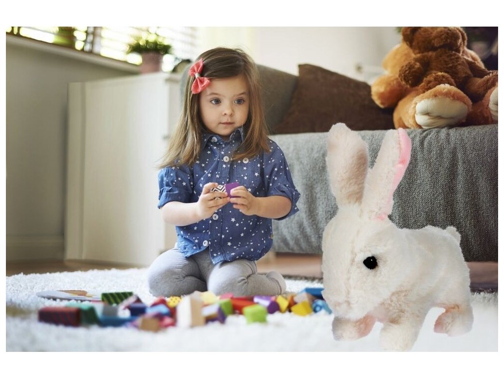 Plyšový králíček Princess Bunny je ideální hračkou nejmenší děti. Je vyroben z jemného na dotyk příjemného materiálu. Po zapnutí králíček skáče, vydává zvuky a pohybuje nosem a oušky. Hračka je určena pro děti od 36 měsíců věku.
