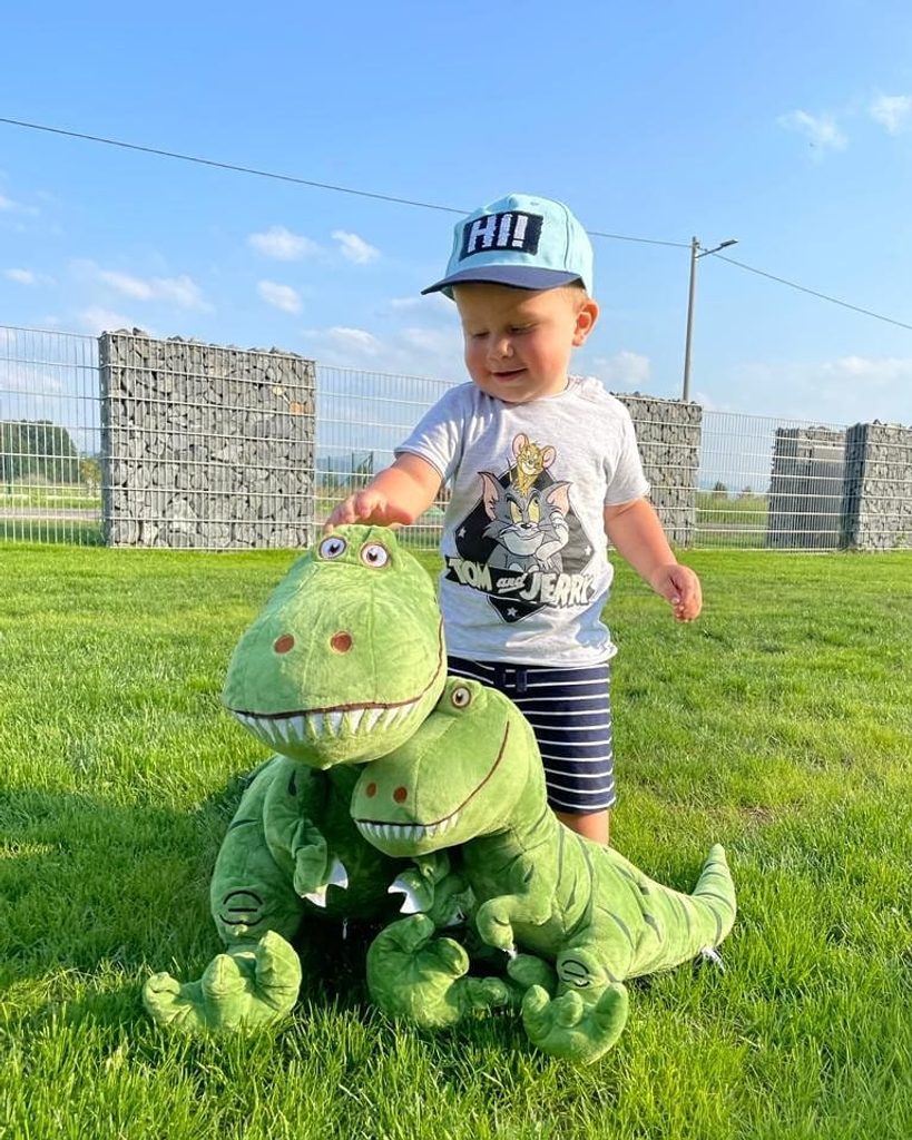 Velký plyšový dinosaurus Dino je snem každého dítěte. Je vyrobený z kvalitního a hebkého materiálu a velmi dobře vycpaný kvalitním plyšem a svou velikostí uchvátí a zaujme každé dítě, ale určitě potěší i jako dárek k narozeninám nebo třeba k Valentýnu. Má velikost 100 cm.