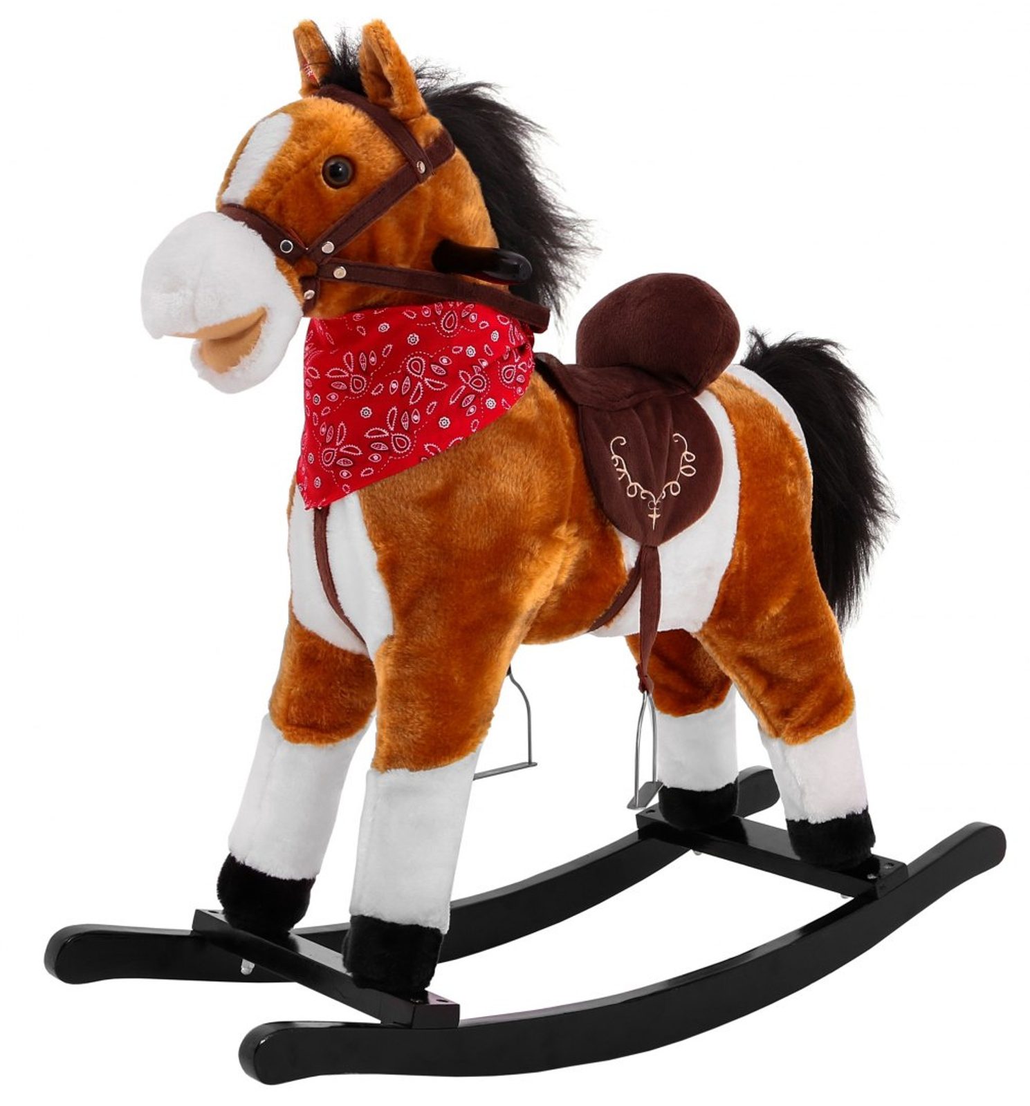 Houpací kůň je hračka snů mnoha dětí, kterou si oblíbí chlapci i dívky, starší i mladší. Tento kouzelný kůň skrývá v uších tlačítka, která po stisknutí aktivují melodii a realistické zvuky cvalu a ržání, což přináší dětem radost a pocit skutečné jízdy. Dřevěné běhouny zajišťují stabilitu při hře a houpání, zatímco dodatečné "nohy" na běhounech zajišťují bezpečnost při nastupování a vystupování. Tato kombinace stability a bezpečnosti činí houpacího koně ideálním společníkem pro každé dítě.
